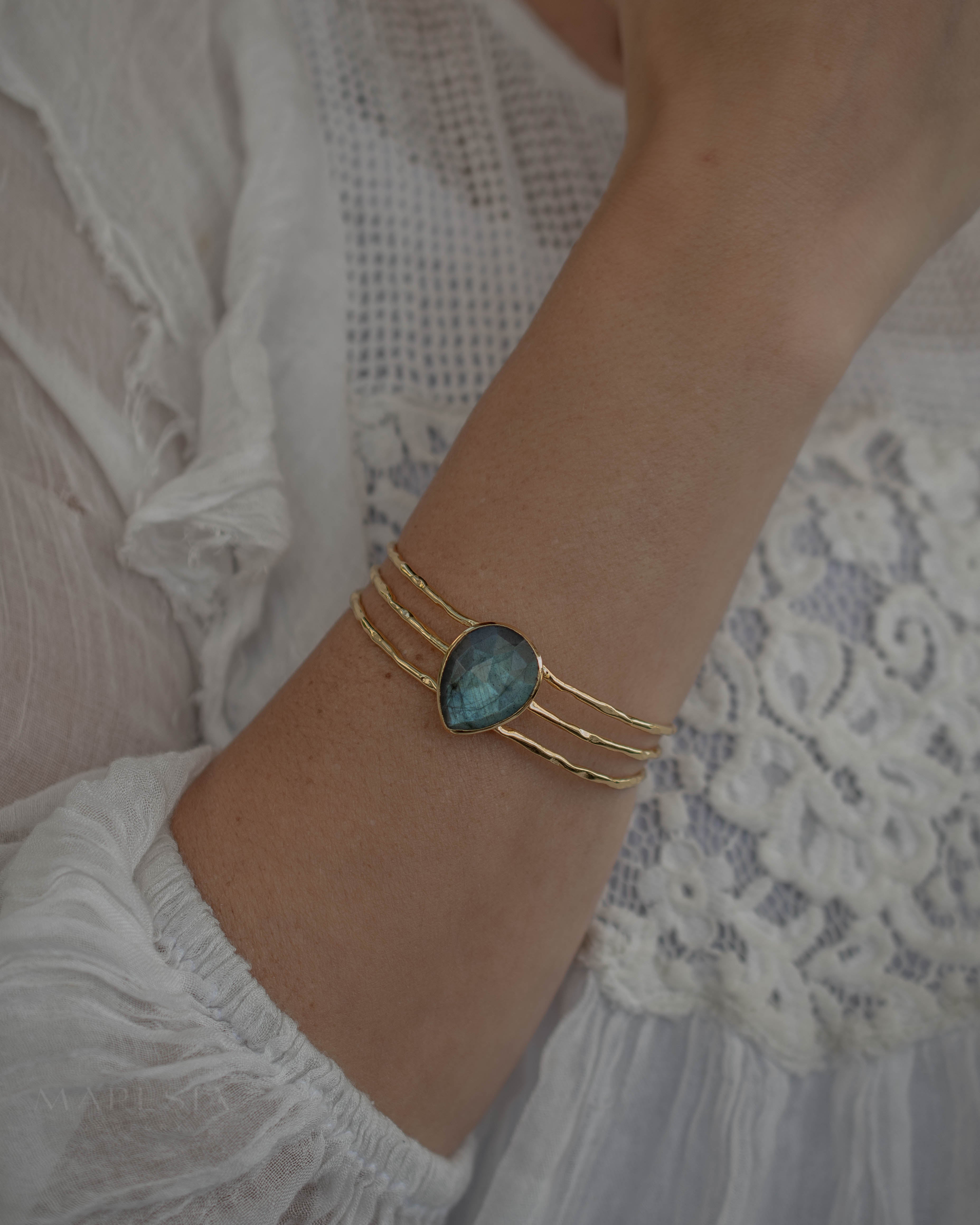 Labradorite Adjustable Bracelet ~ Gold Plated 18k ~ Handmade ~Statement  Hippie ~Bohemian ~Jewelry ~Gift For Her ~Gemstone ~Body MB046