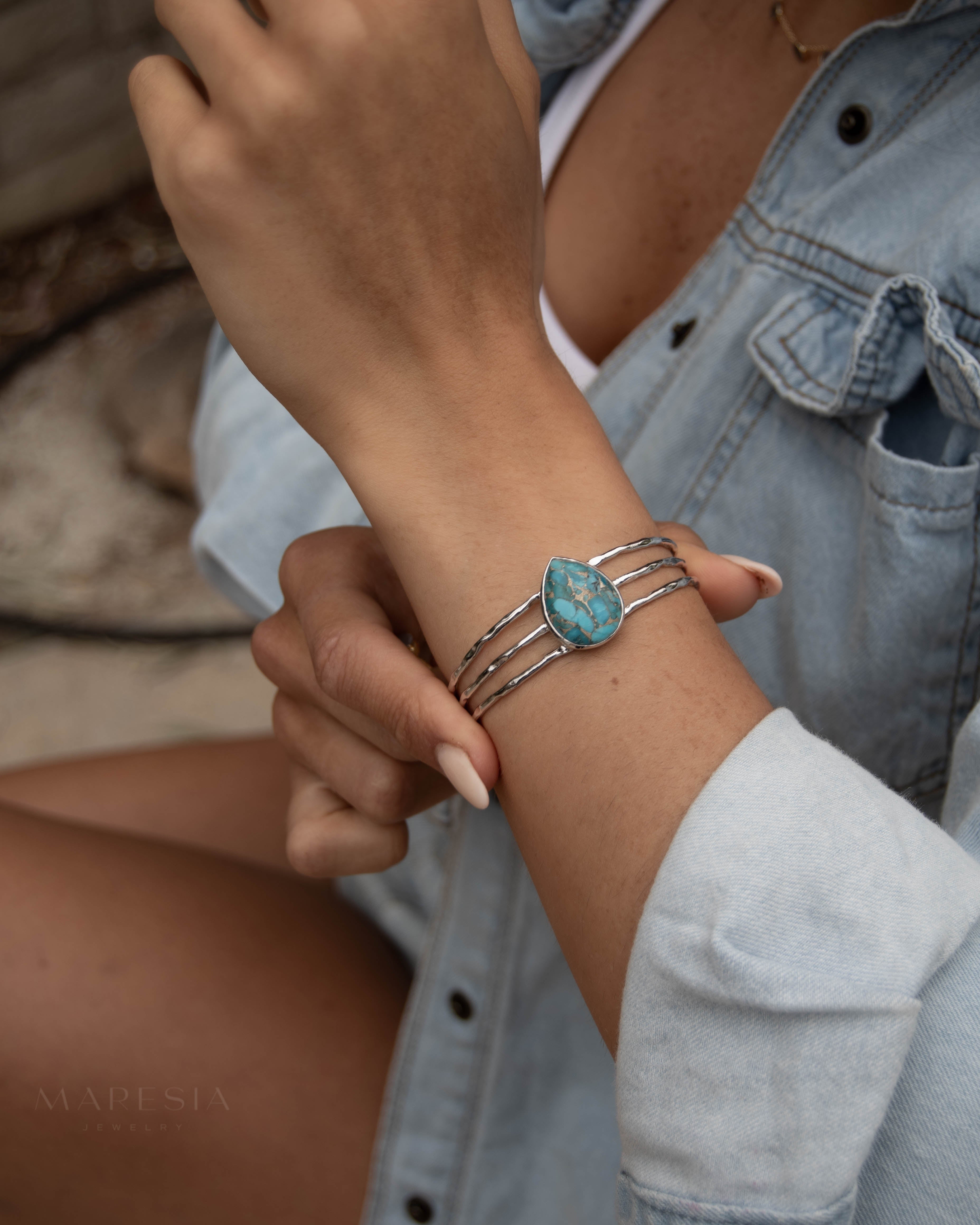 Copper Turquoise Adjustable Bracelet ~ Gold Plated 18k ~ Handmade ~Statement  Hippie ~Bohemian ~Jewelry ~Gift For Her ~Gemstone ~Body MB044