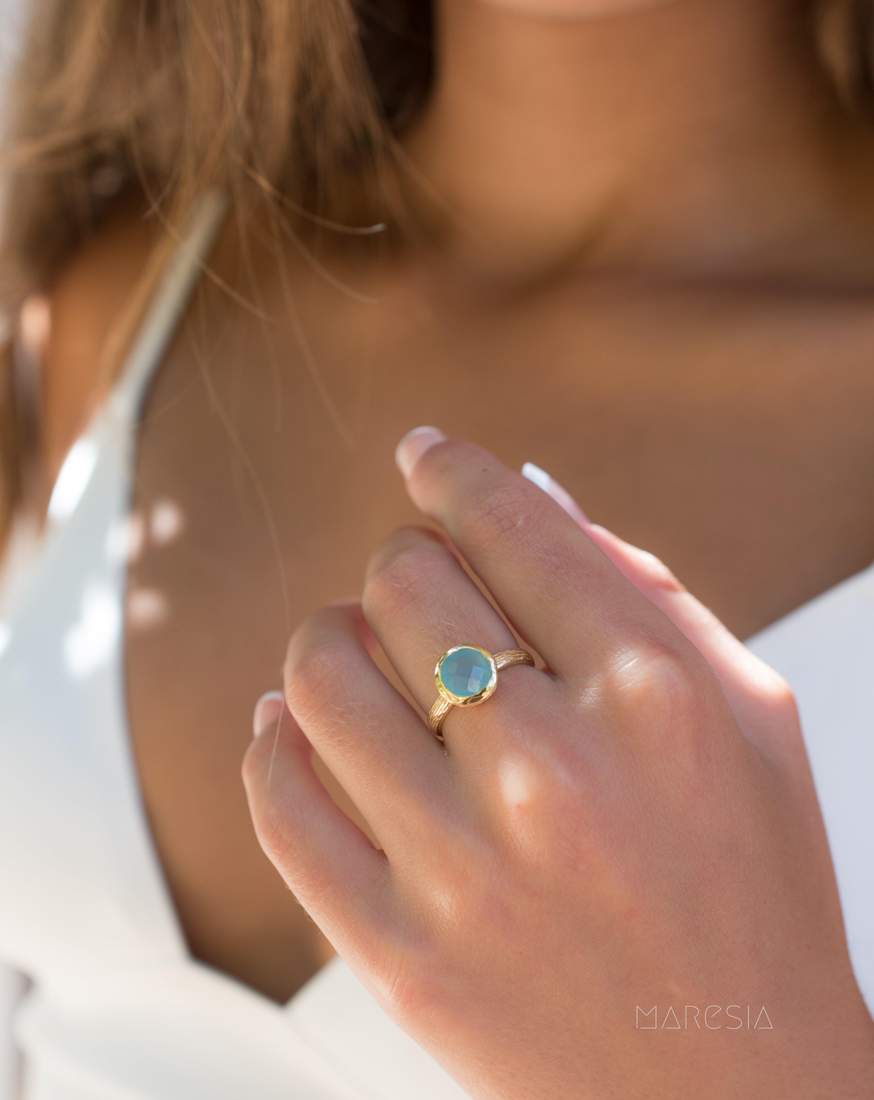 Renata Aqua Chalcedony Gold Ring ~ 18k Gold Plated ~ SMR117