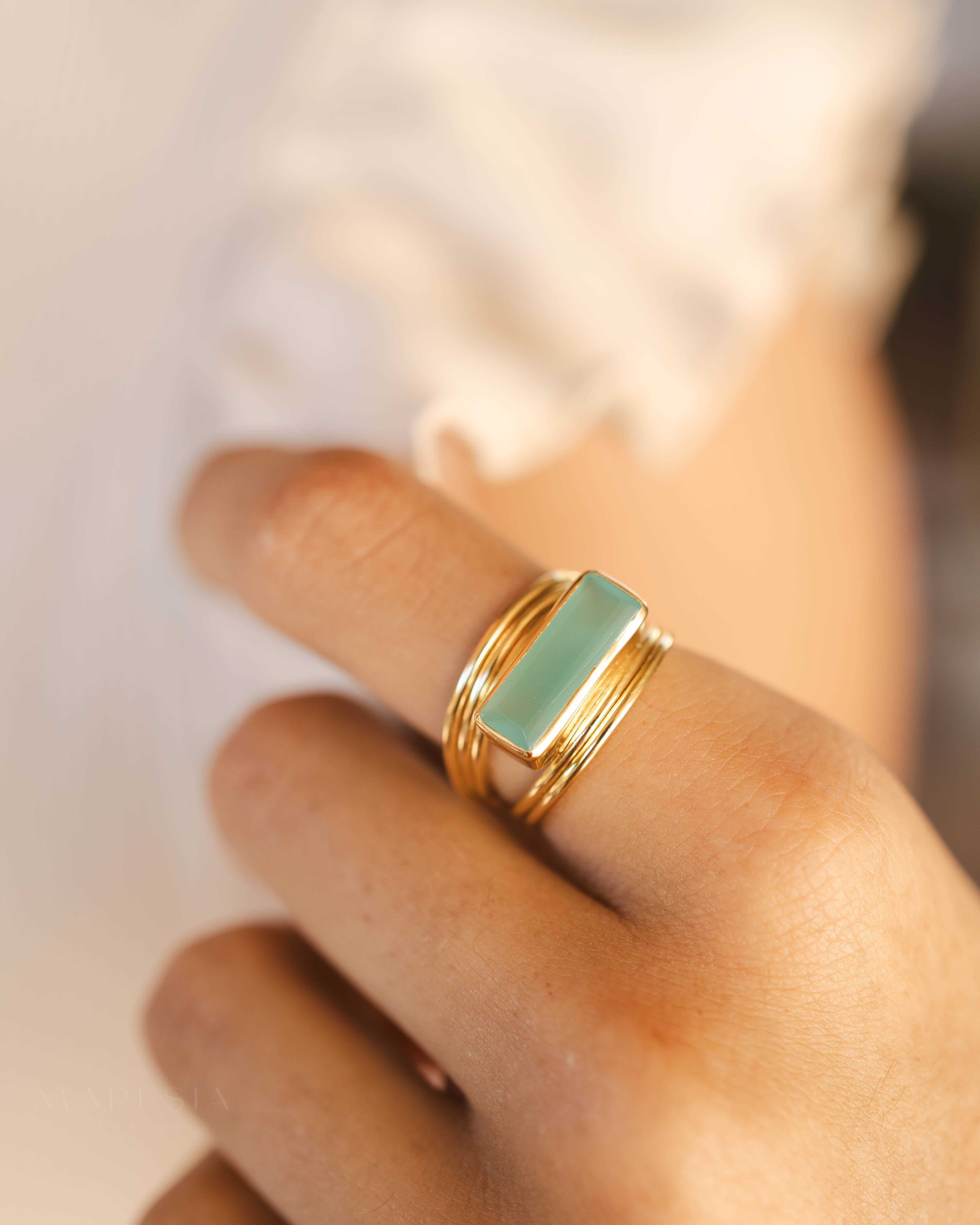 Aqua Chalcedony ~ Rectangular Ring ~ 18k Gold Plated ~ MR302