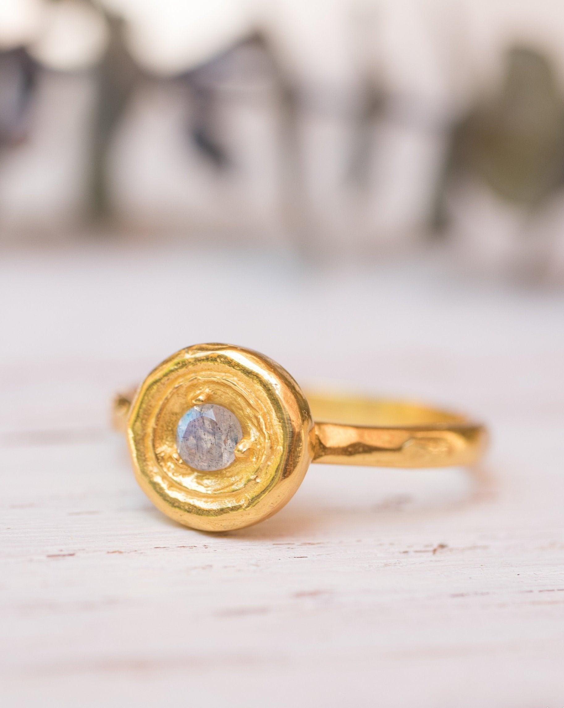 Rainbow Labradorite Ring ~ 14k Gold Plated over Sterling Silver -MR123A