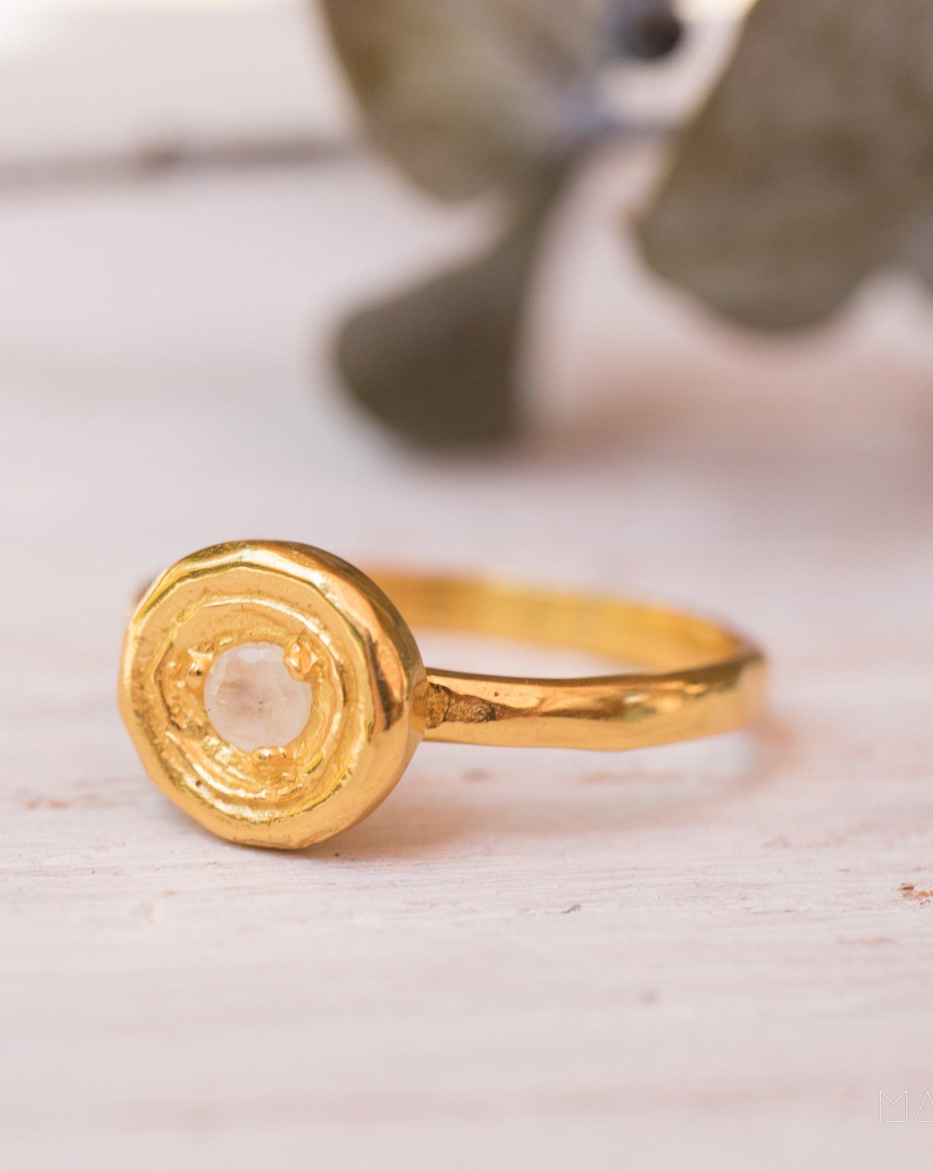 Rainbow Moonstone Ring ~ ~ 14k Gold Plated over Sterling Silver 925 ~ MR150