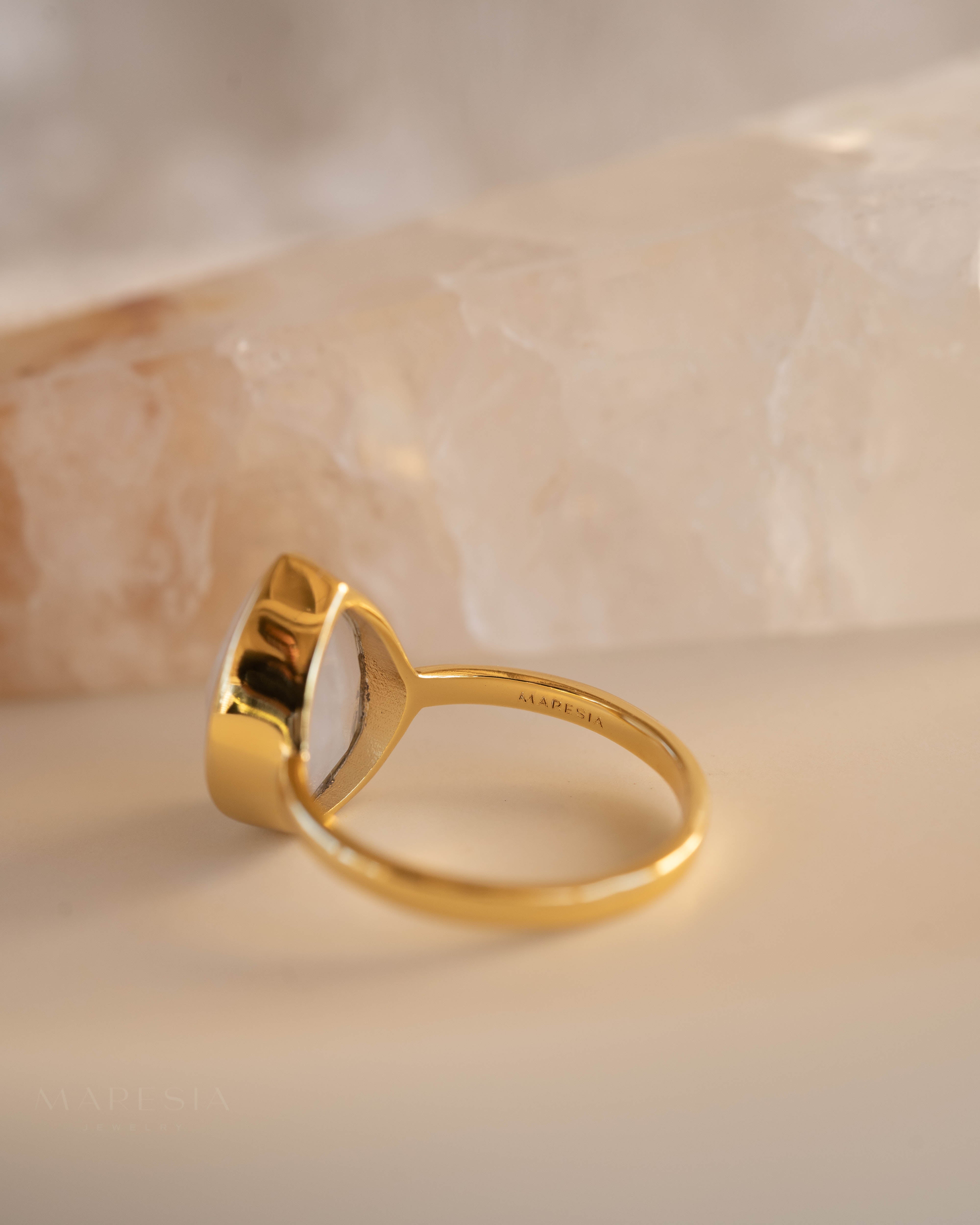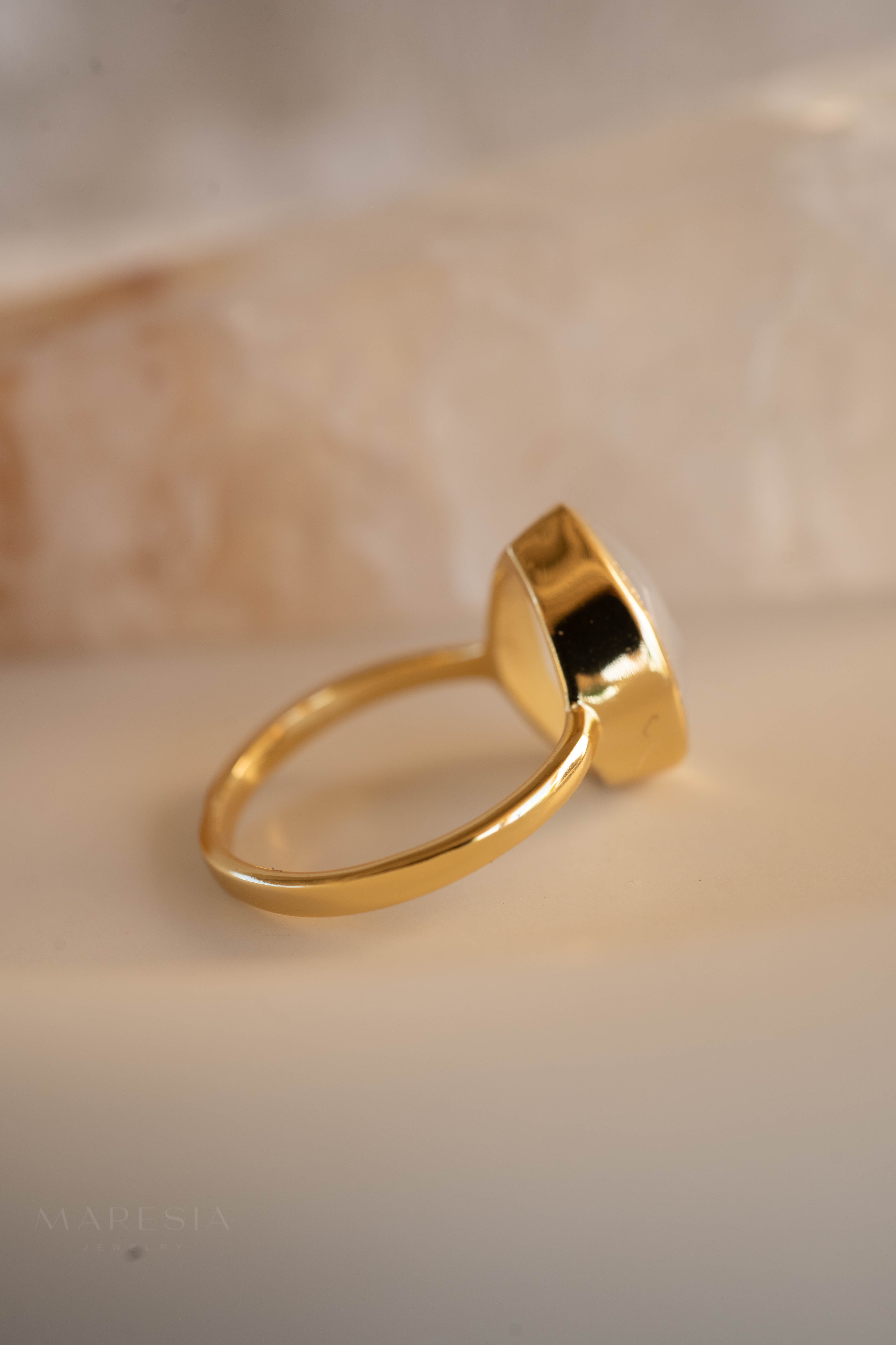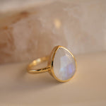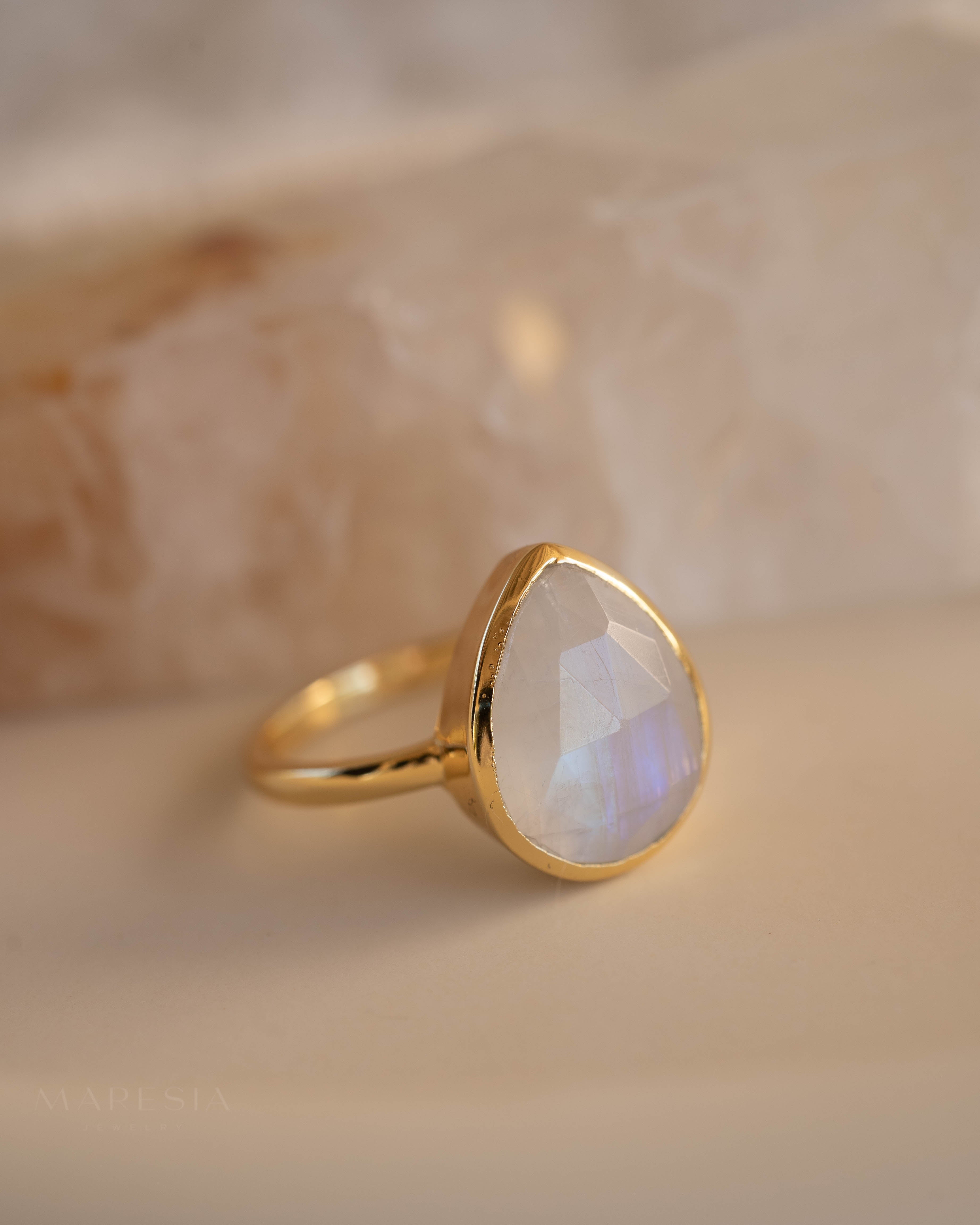 Lia Rainbow Moonstone Tear Drop Ring ~ 18k Gold Plated ~ MR147