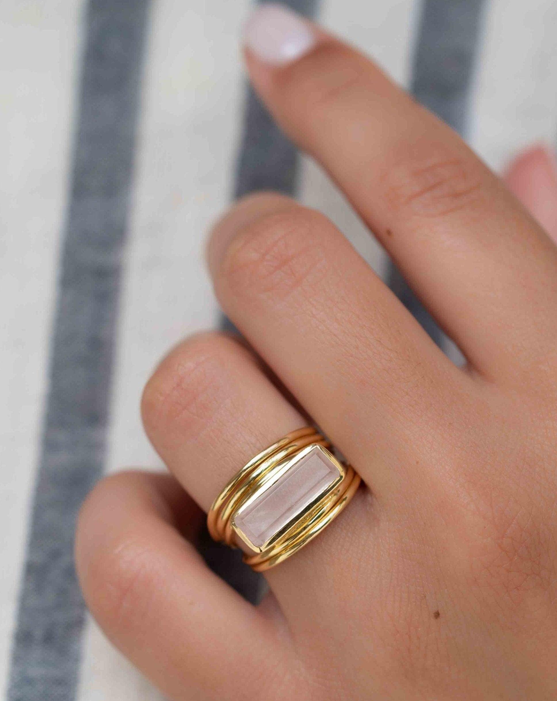 Rose Quartz ~ Rectangular Ring ~ 18k Gold Plated ~ MR300