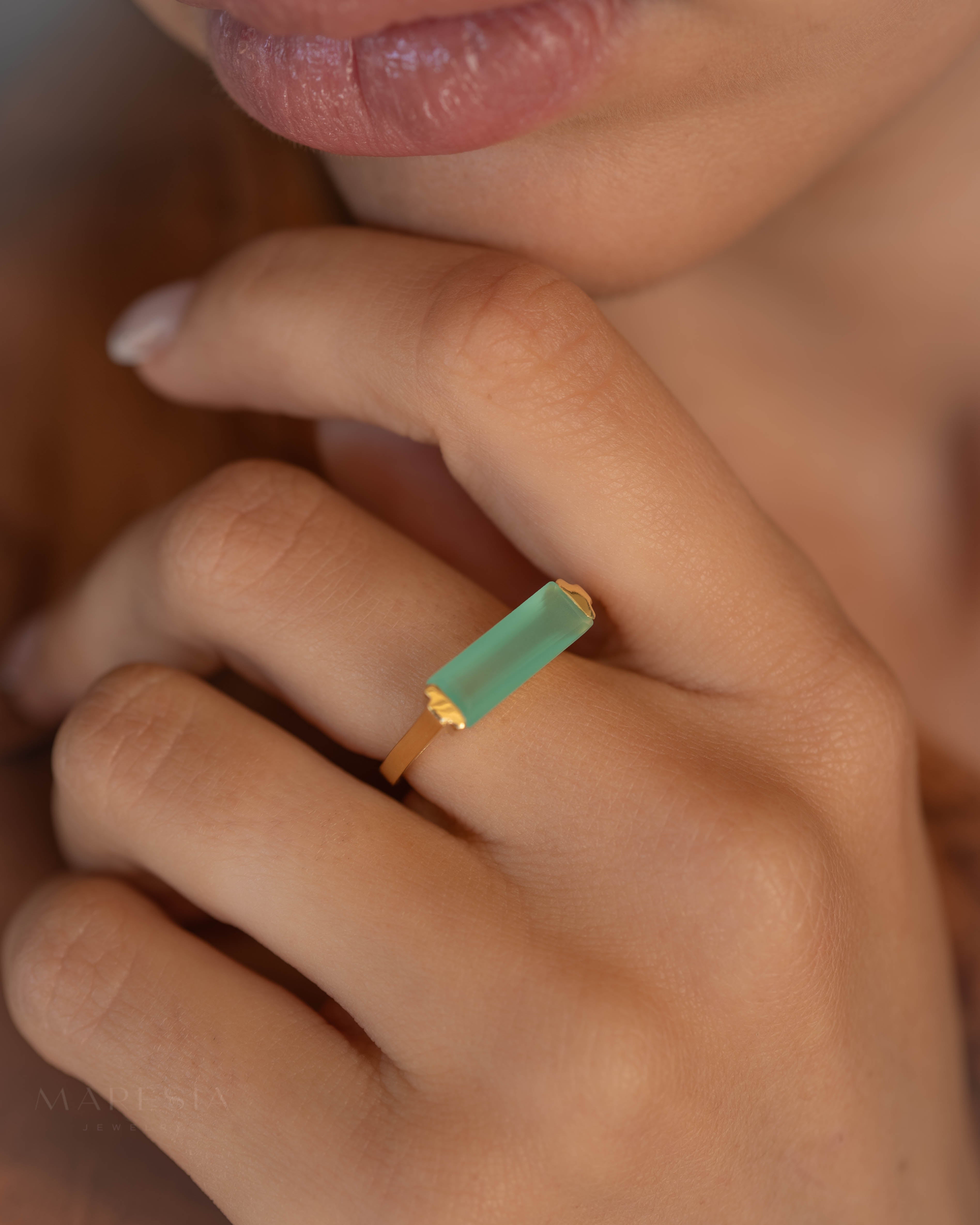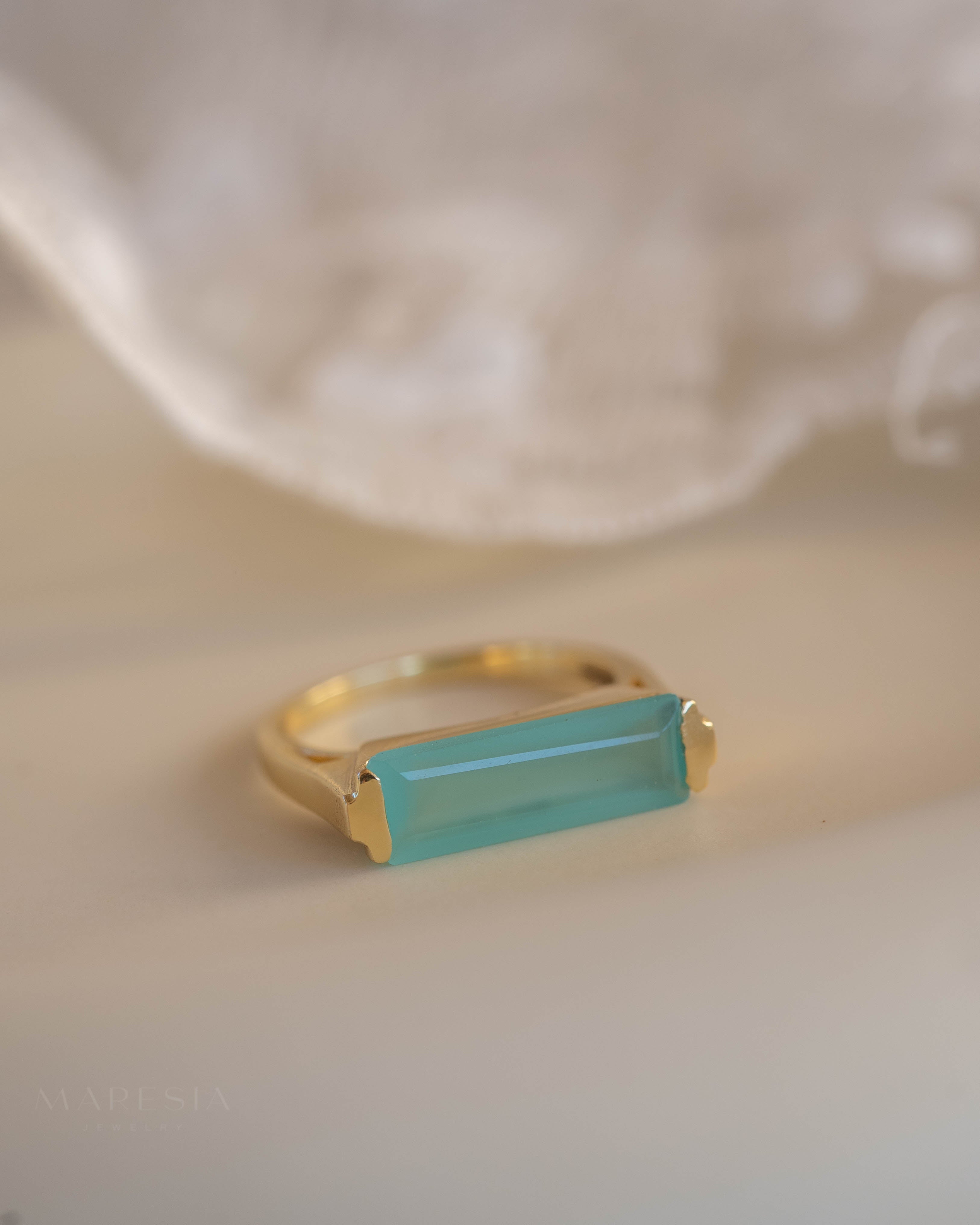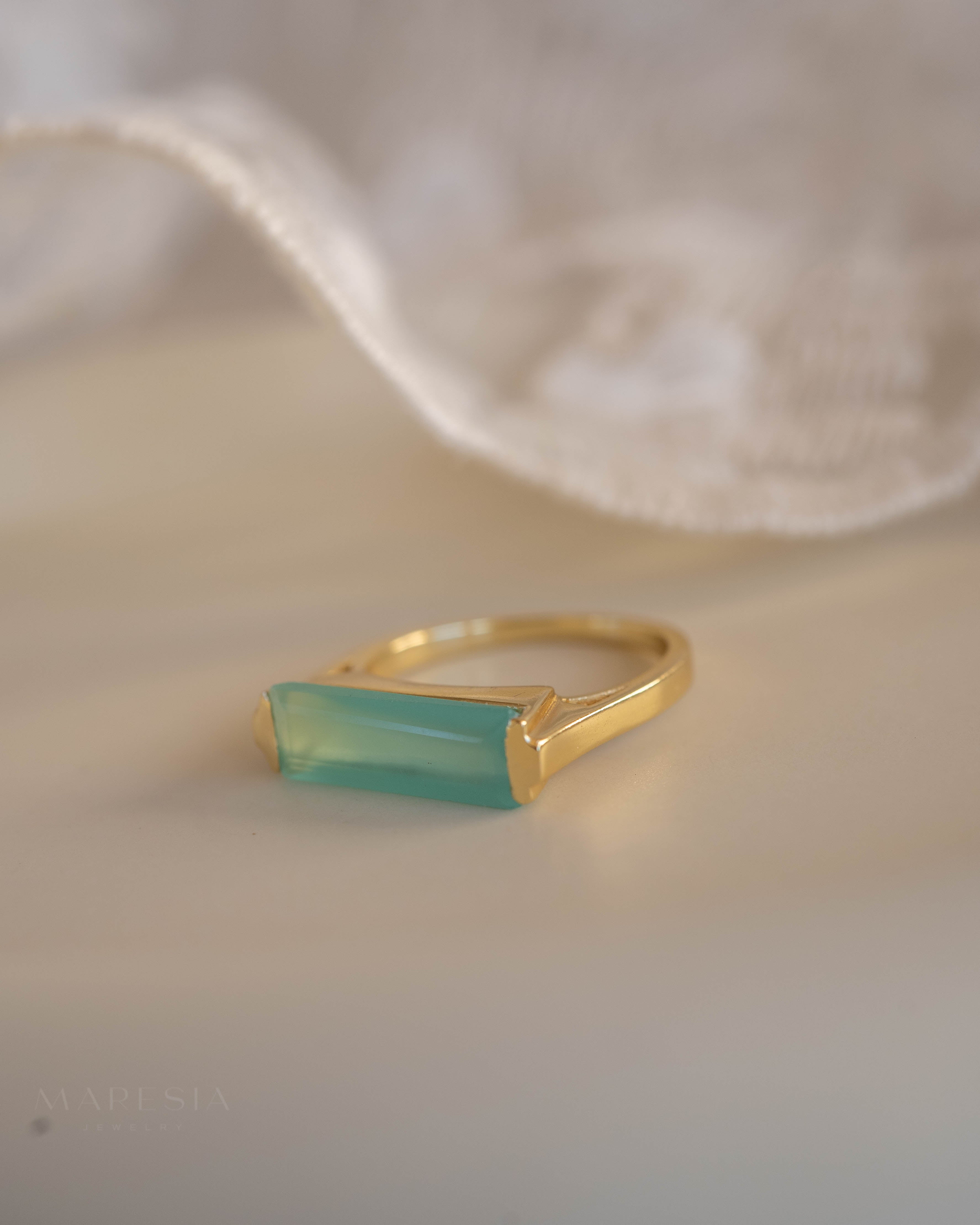 Carine Gold Ring ~ Aqua Chalcedony ~18k Gold Plated ~ MR162