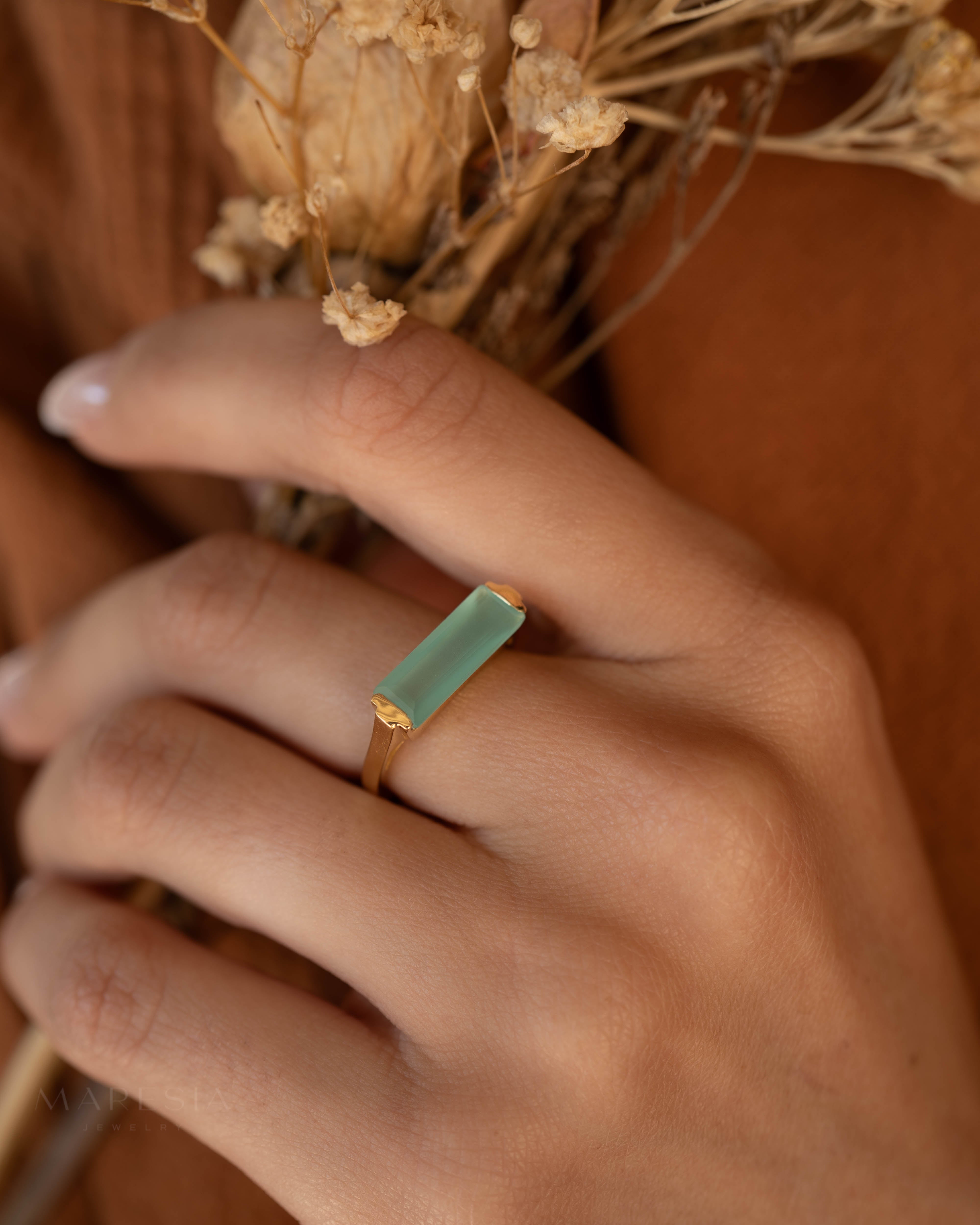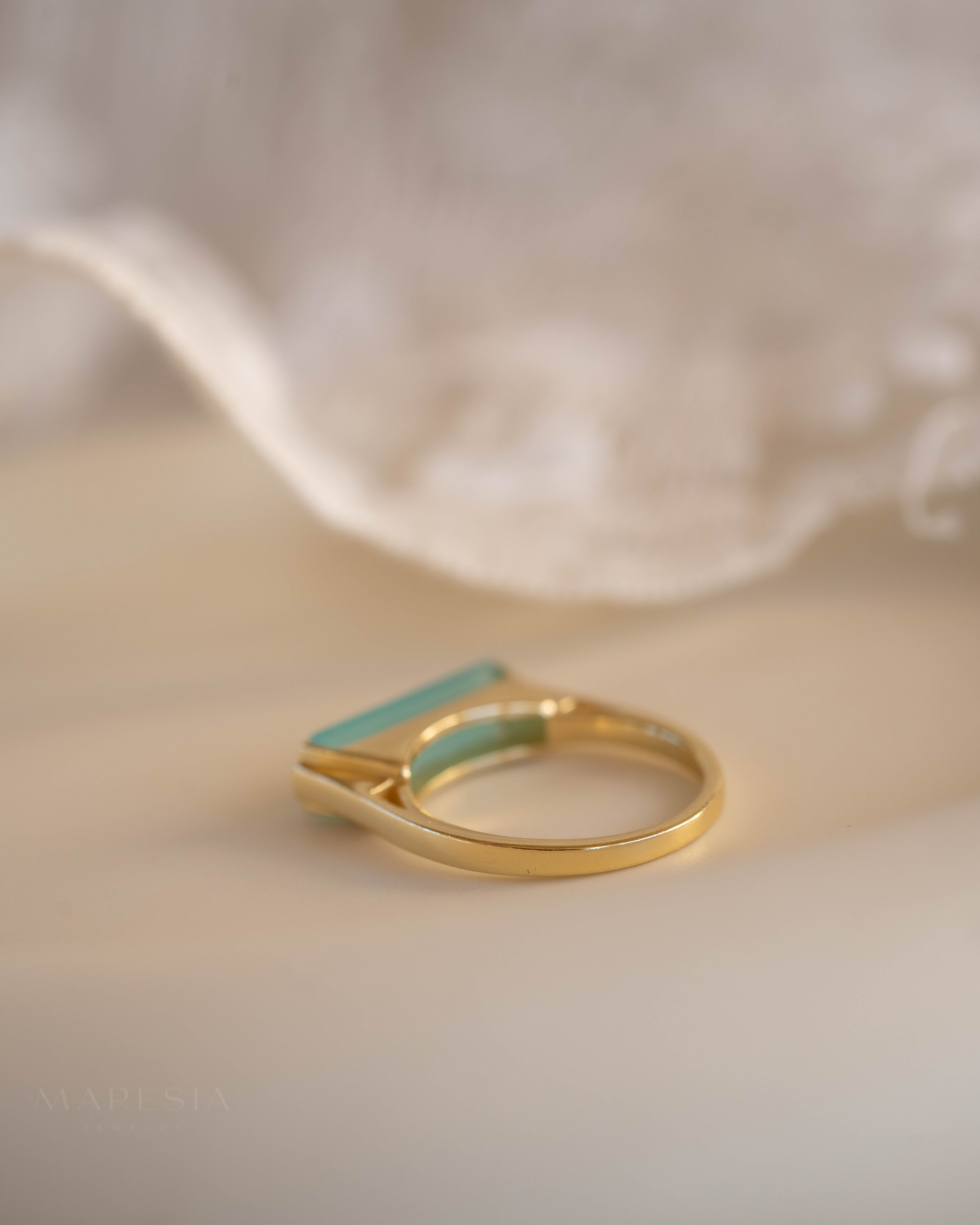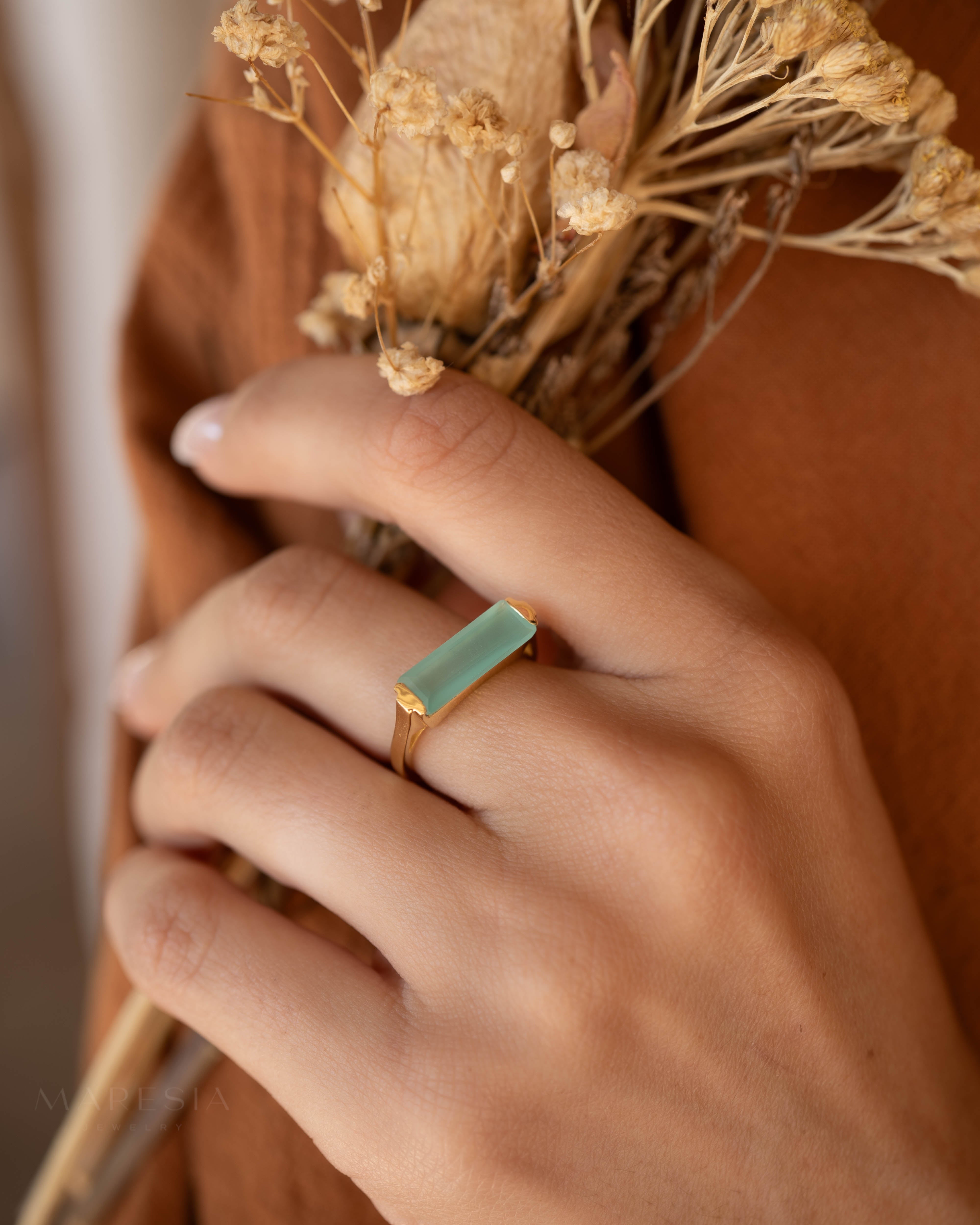 Carine Gold Ring ~ Aqua Chalcedony ~18k Gold Plated ~ MR162
