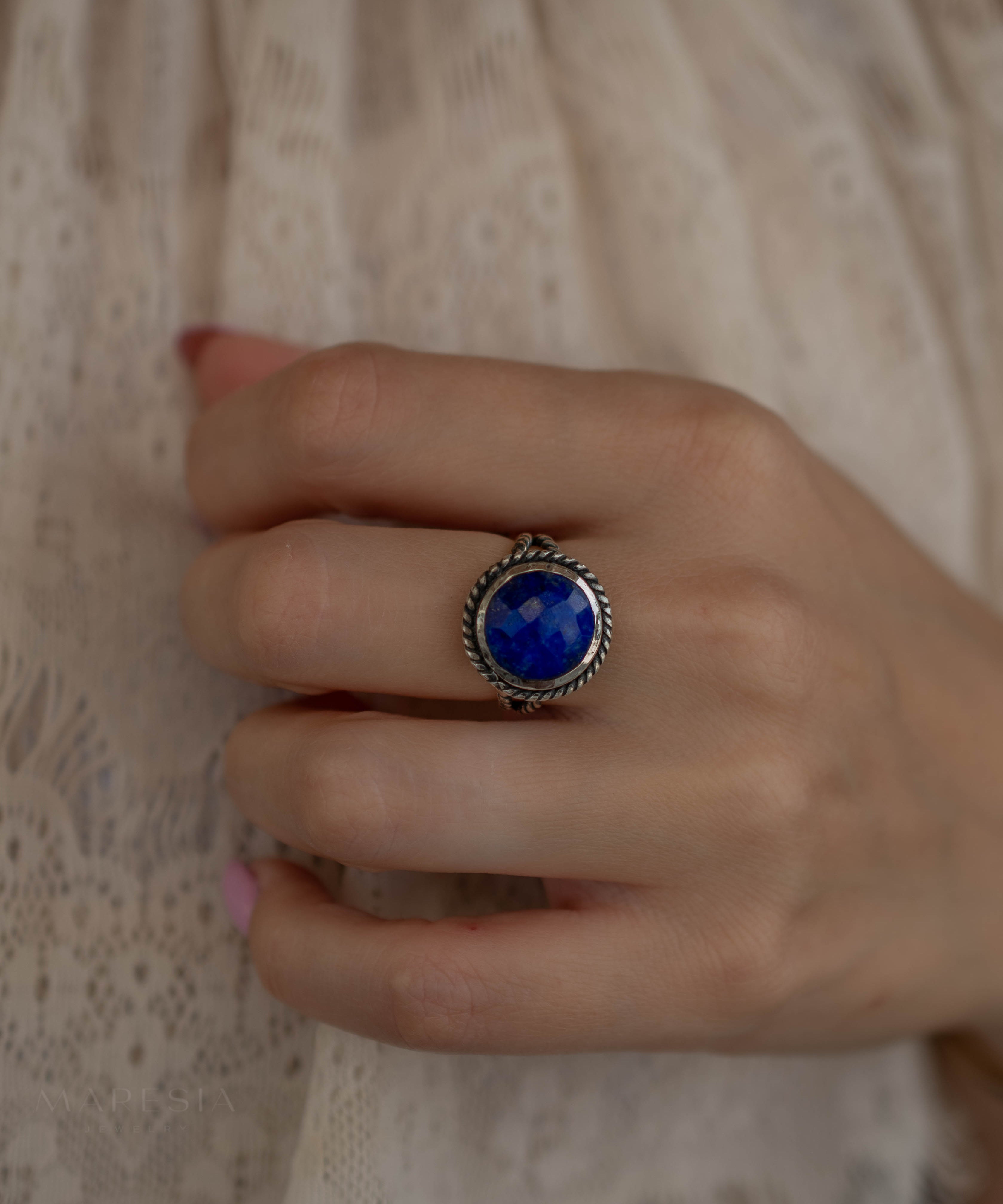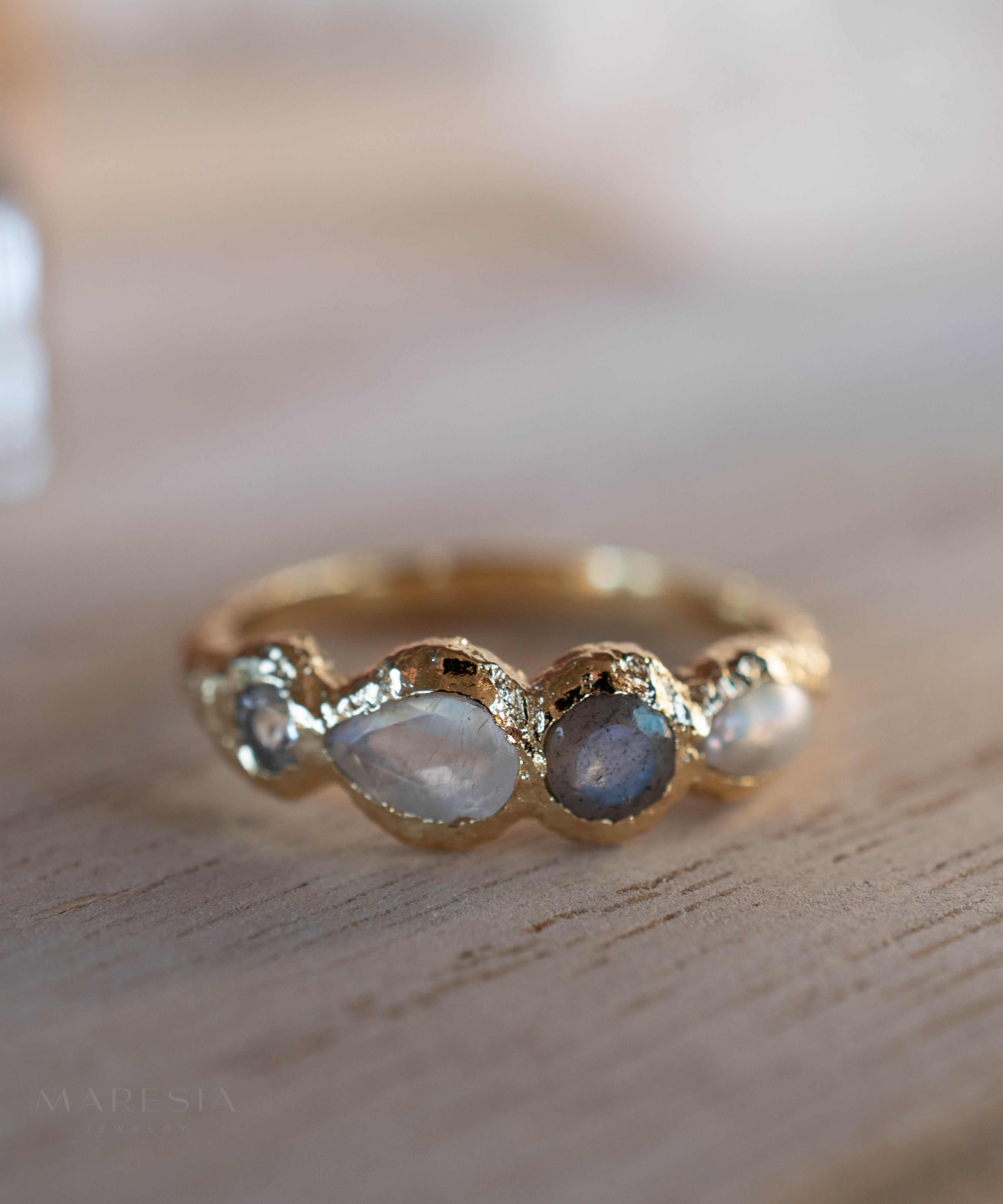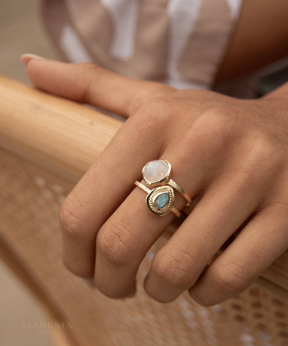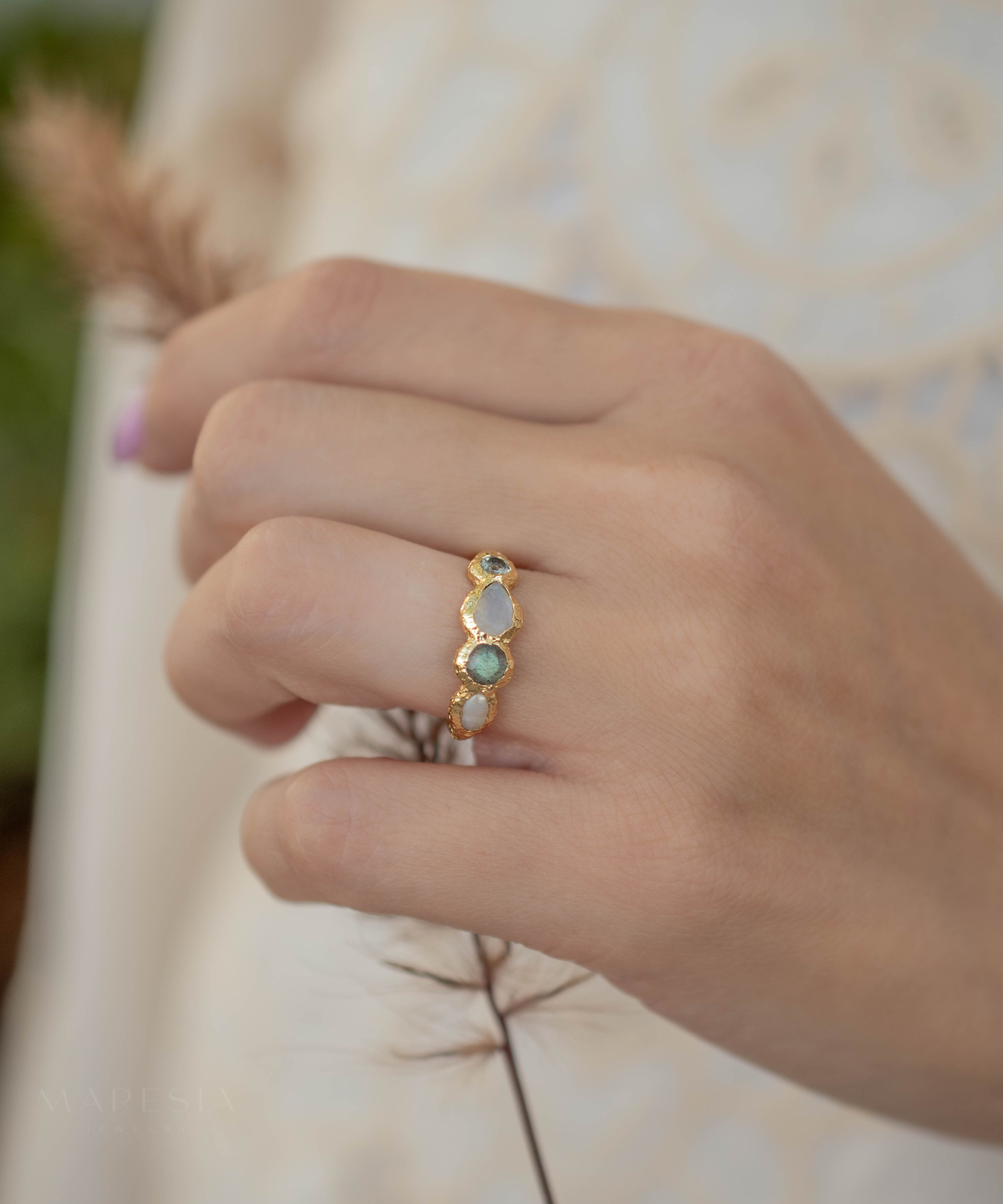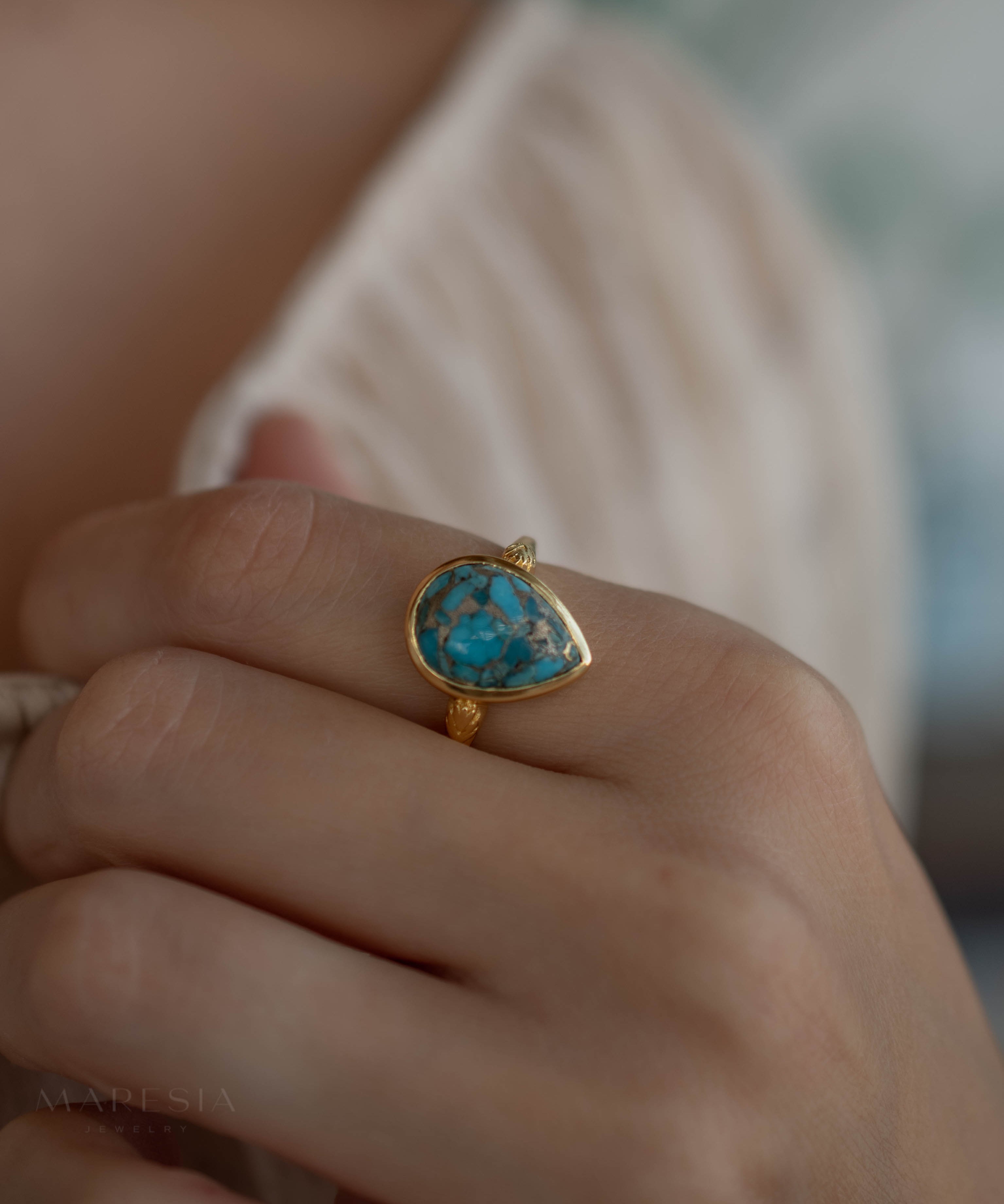 Larimar Ring ~ Statement ~Gold Plated over Sterling Silver 925 ~ Gemstone ~ Semi Precious Stone ~ Blue ~ Natural ~ Organic ~Thin Band~MR349