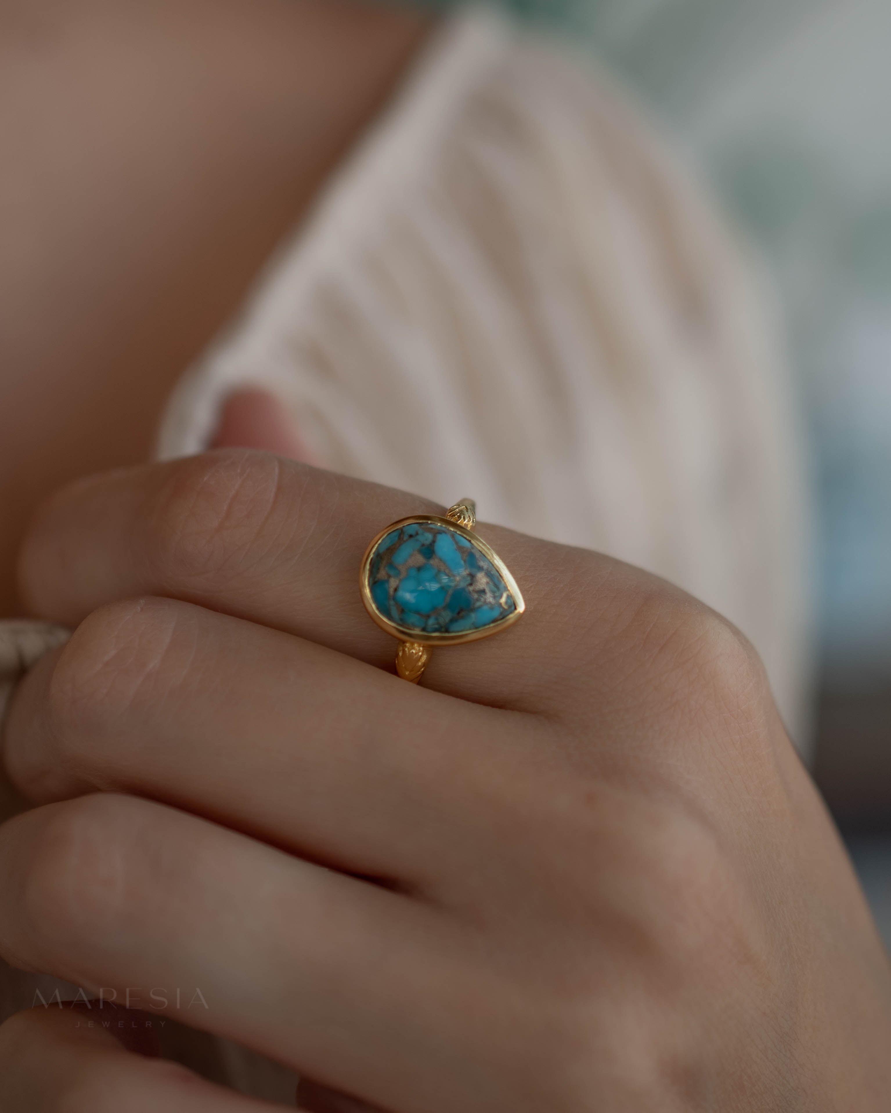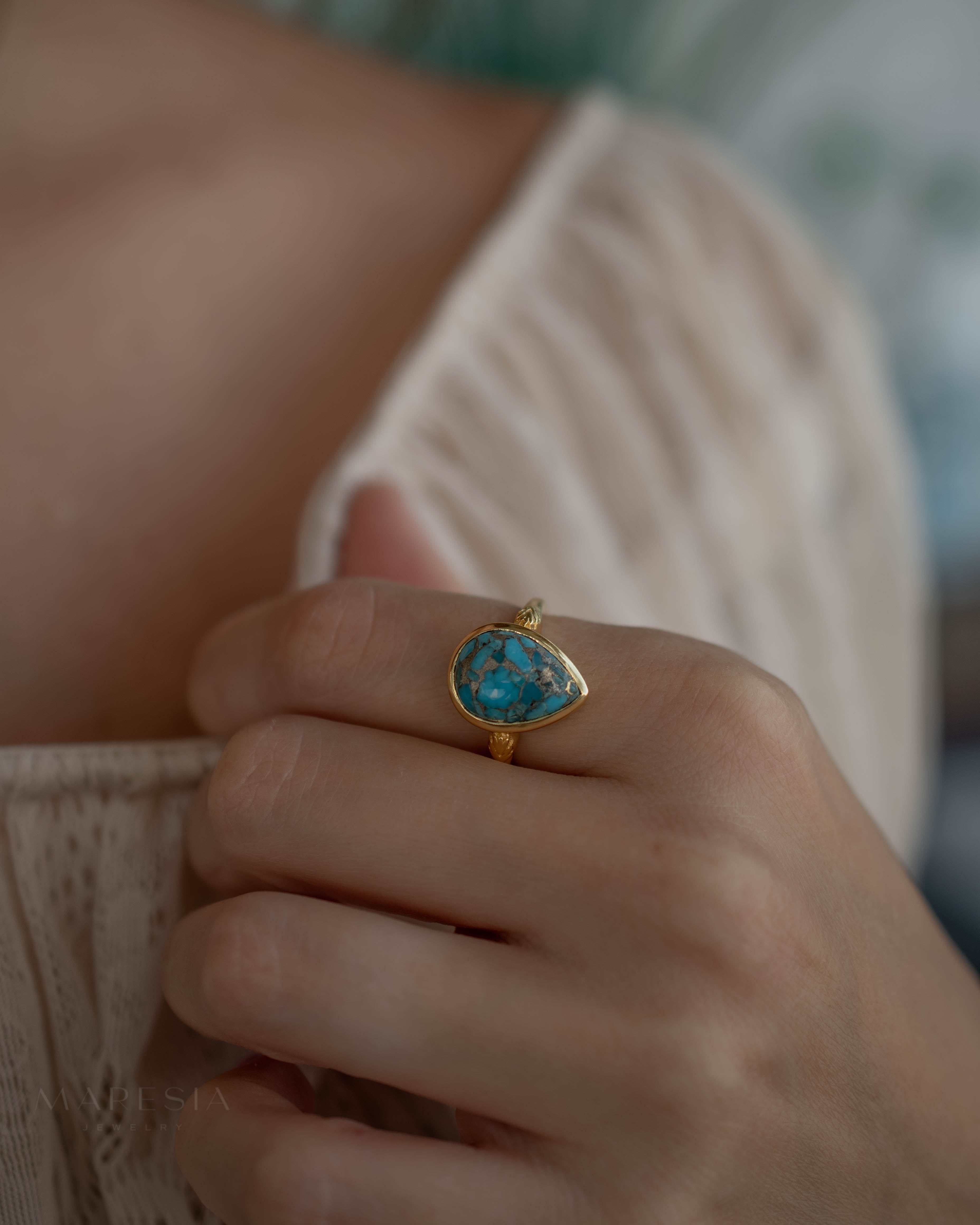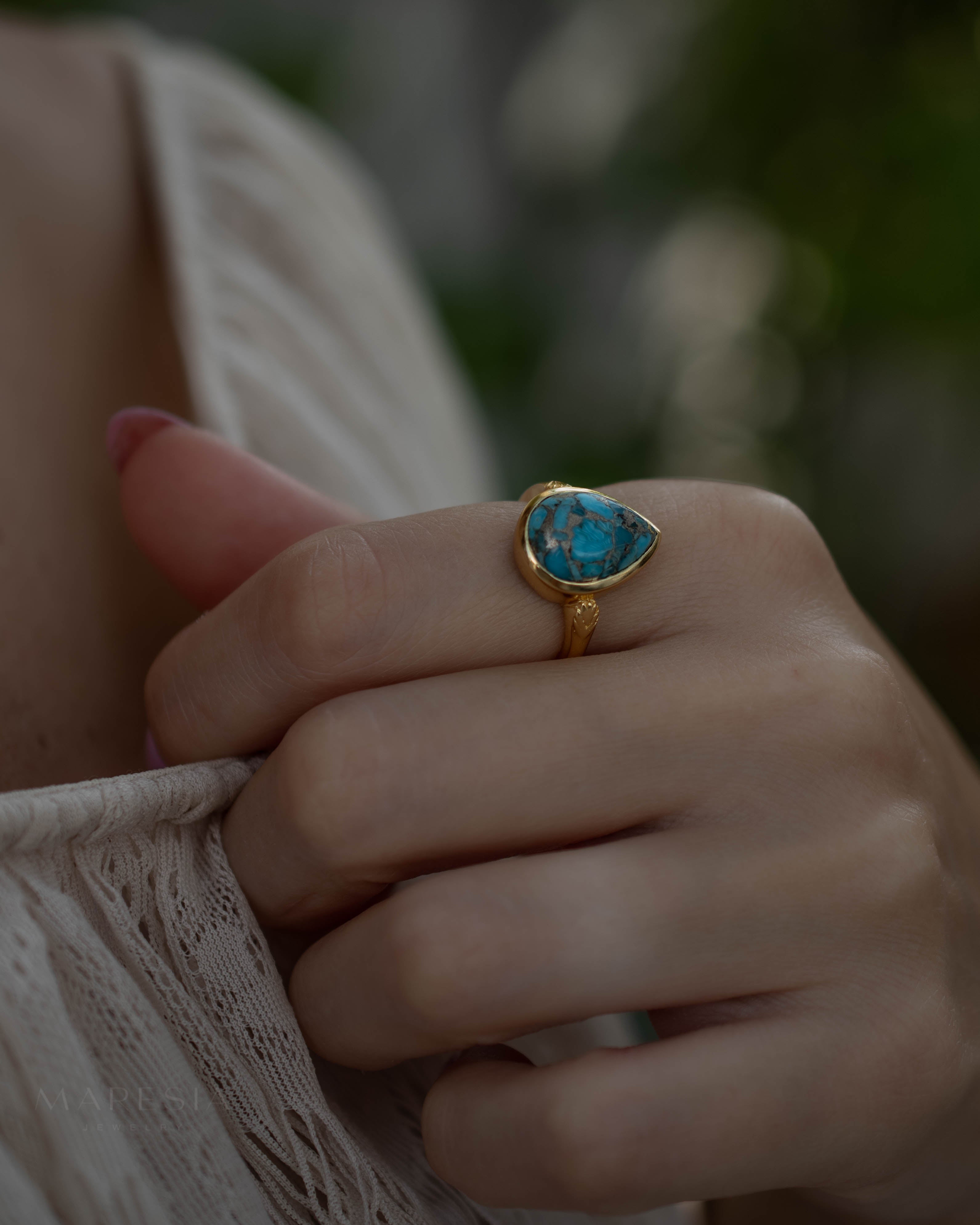 Copper Turquoise Ring ~ 18k Gold Plated ~ MR356
