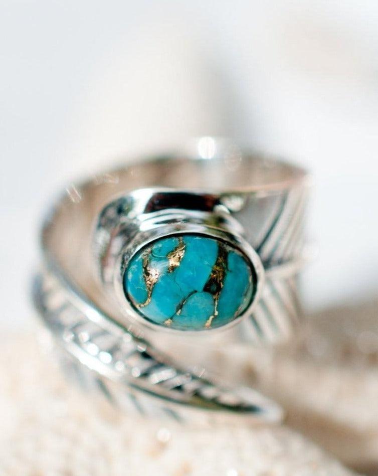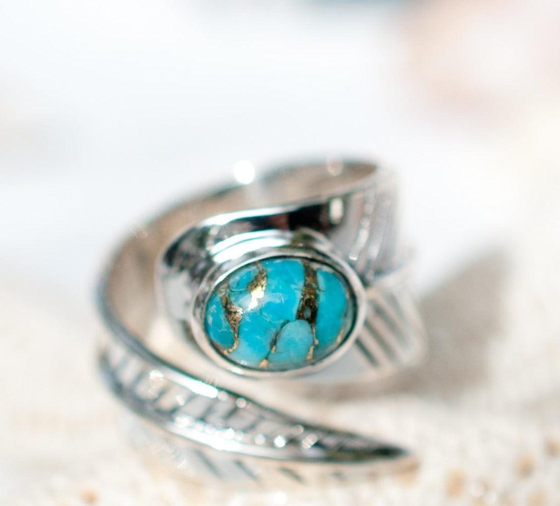 Tortuga Copper Turquoise Ring ~ Sterling Silver 925 ~ SMR130