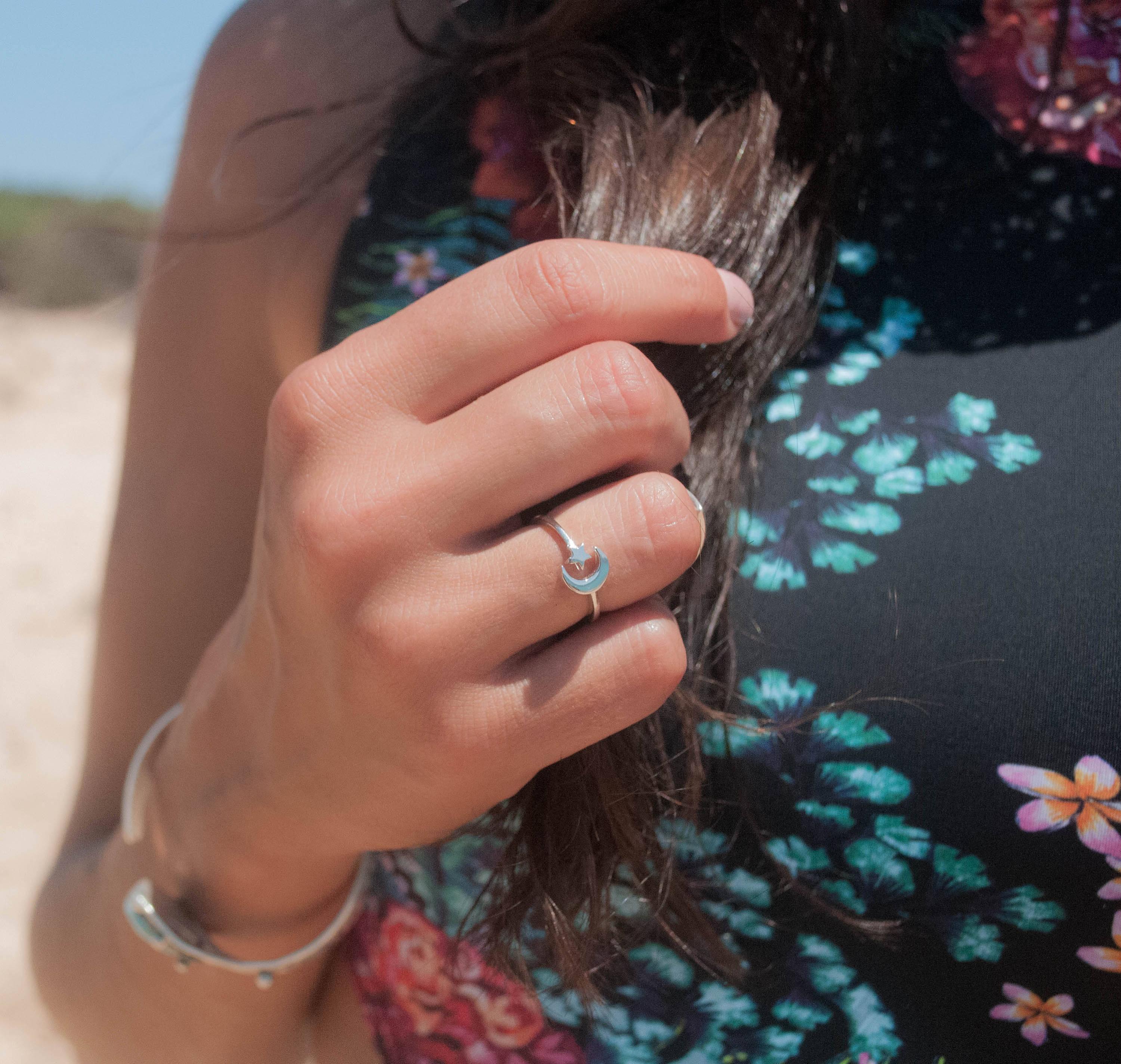 Moon and Star Ring ~Sterling Silver 925 ~ SMR008 - Maresia Jewelry