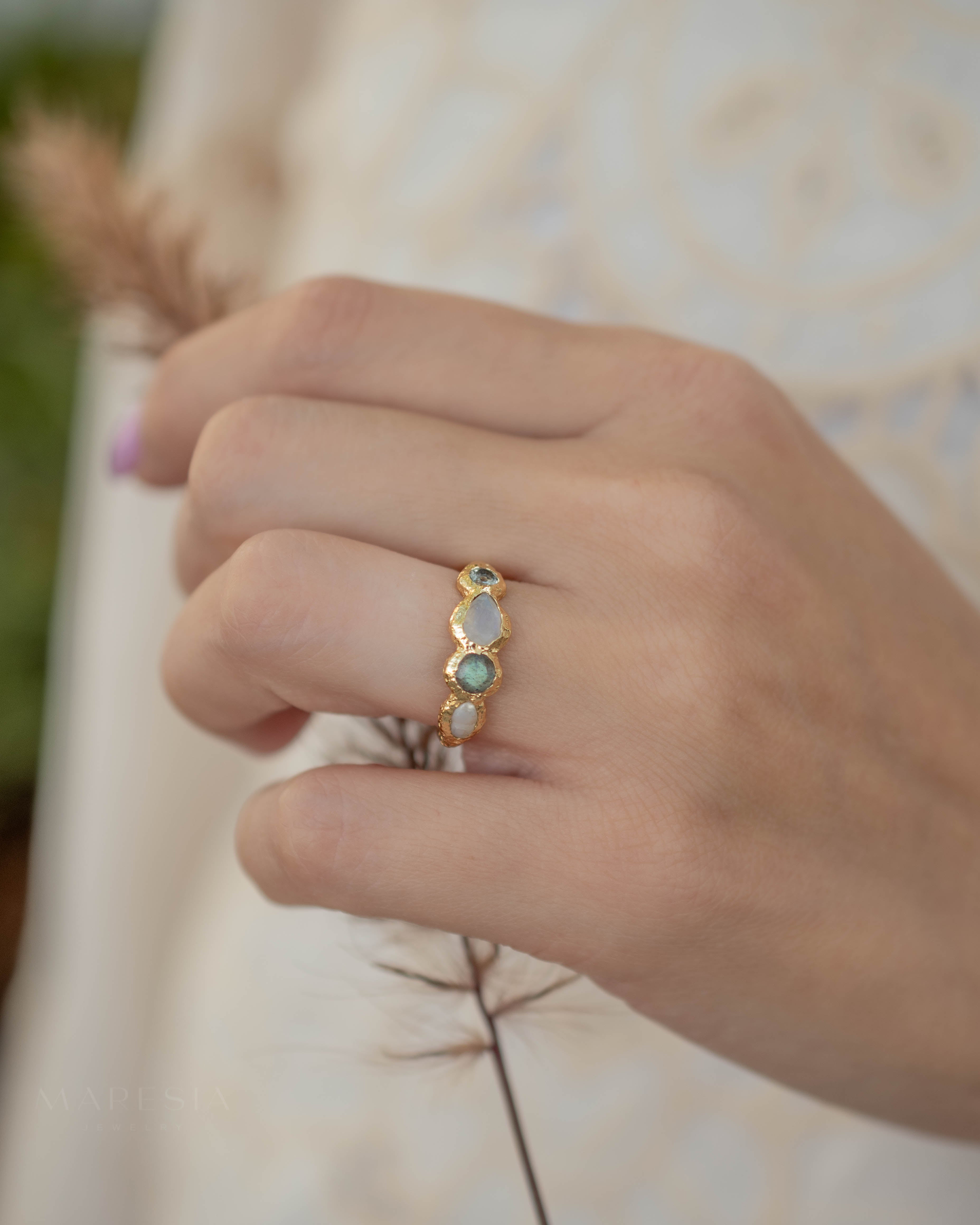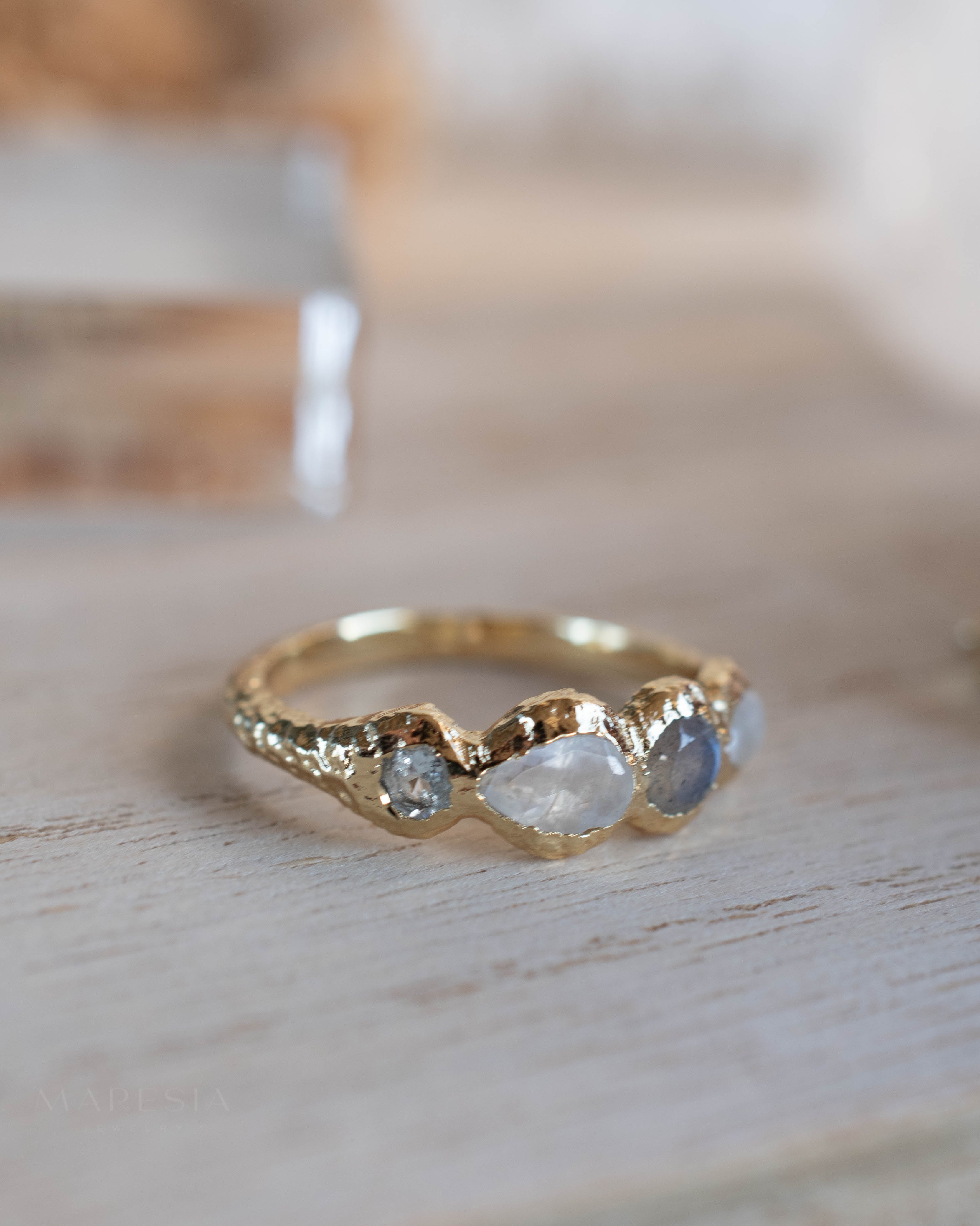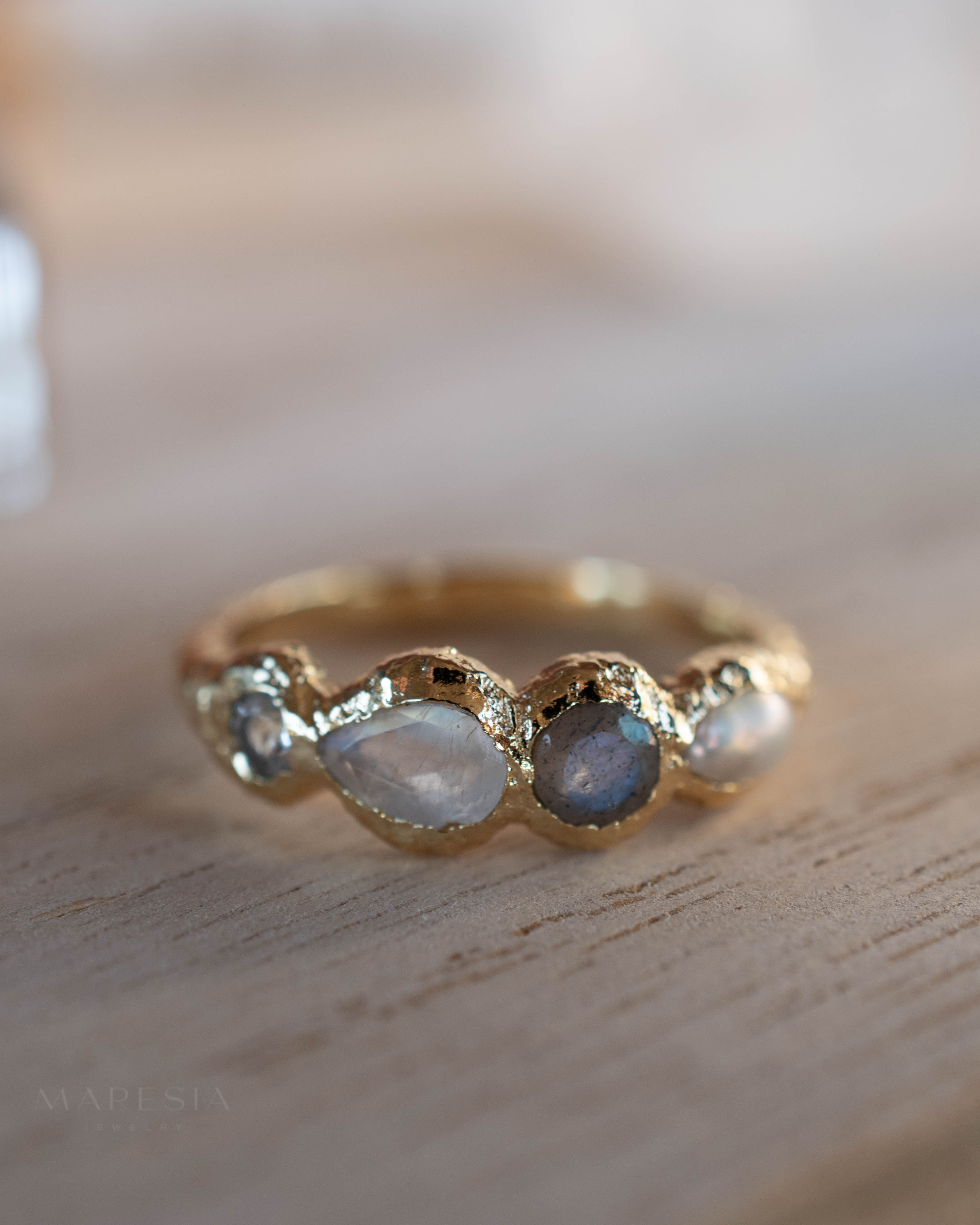 ✦ S T O N E S : Blue Topaz hydro, Moonstone, Labradorite and Fresh water pearl