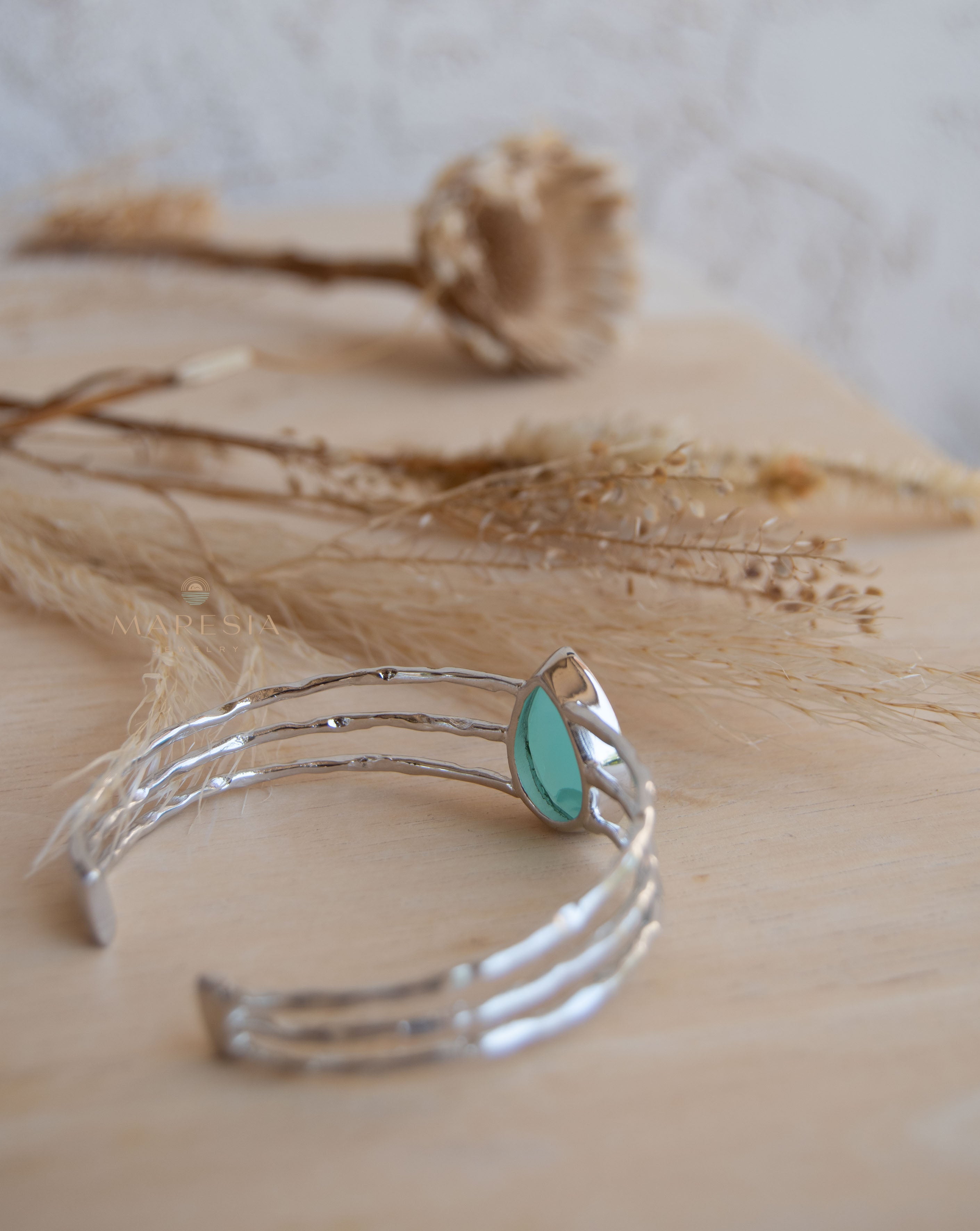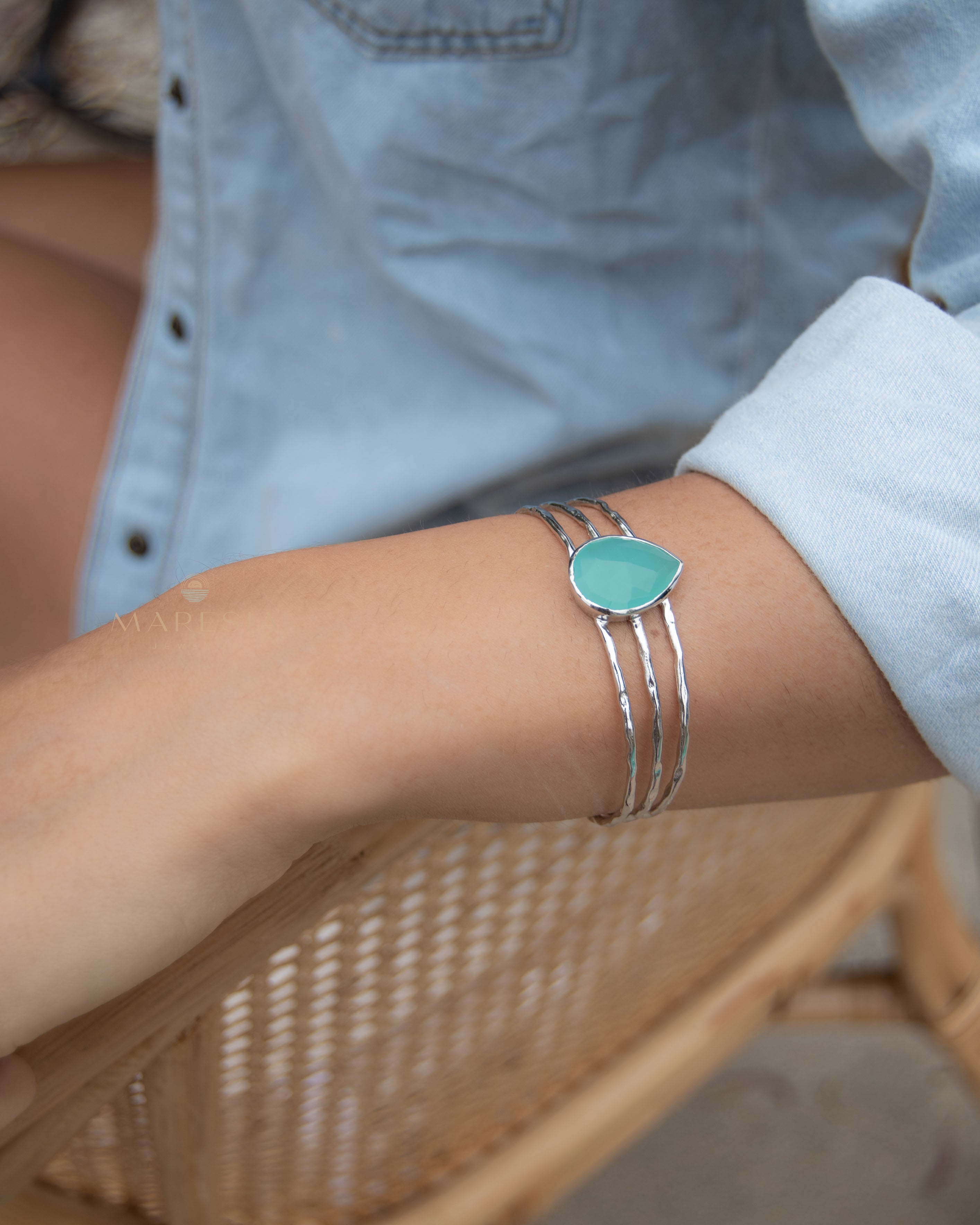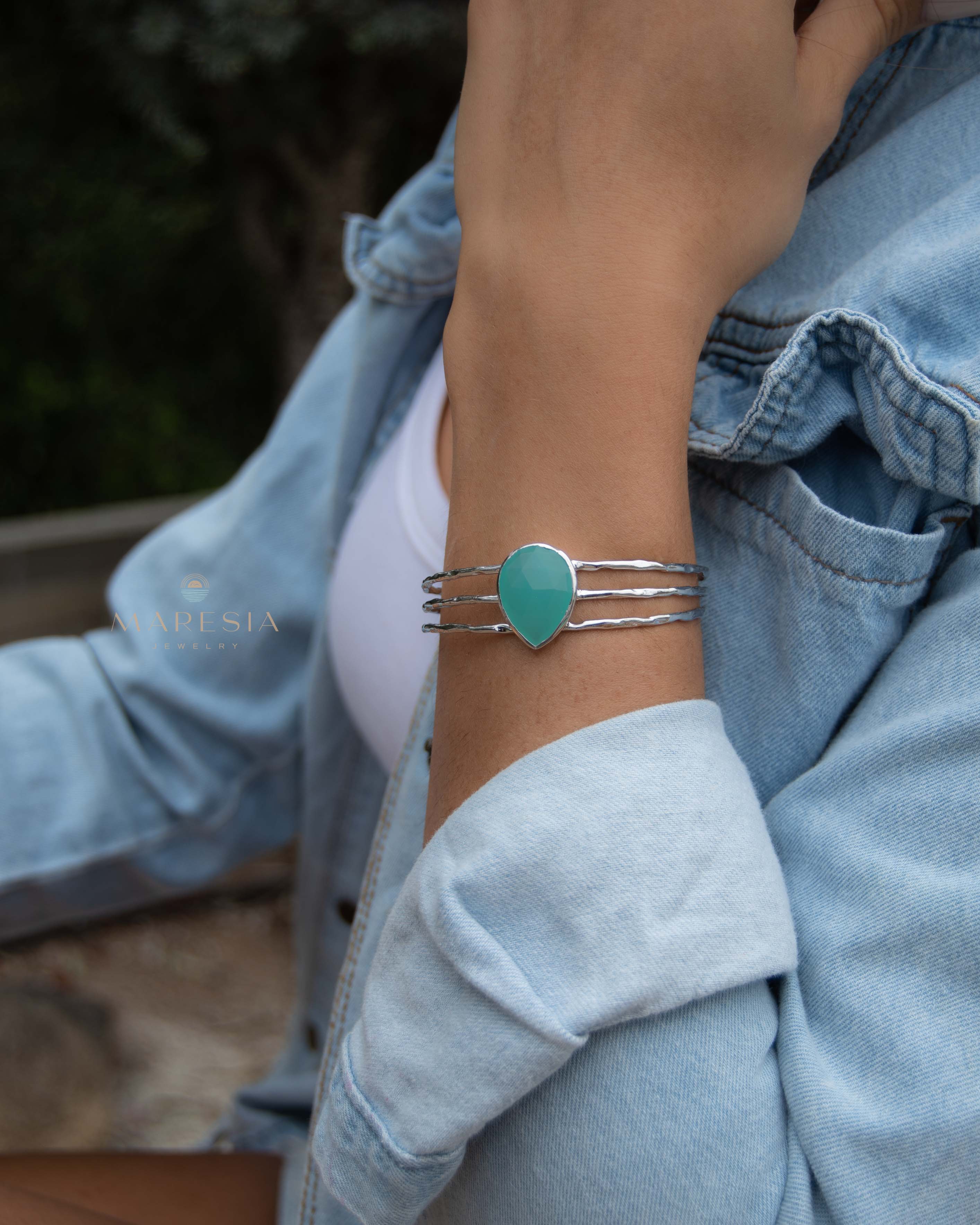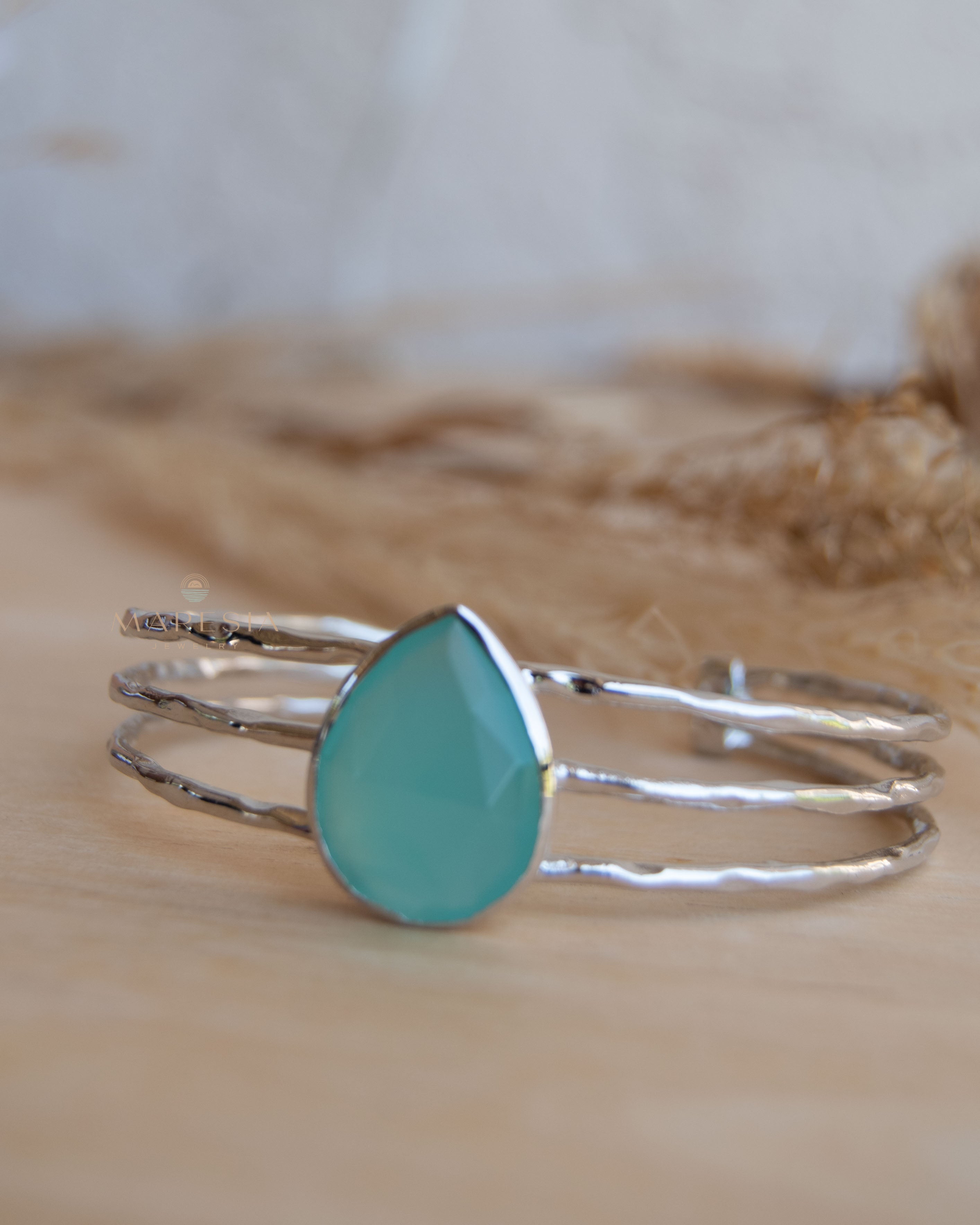Aqua Chalcedony Adjustable Bracelet ~ Gold Plated 18k ~ Handmade ~Statement  Hippie ~Bohemian ~Jewelry ~Gift For Her ~Gemstone ~Body MB043