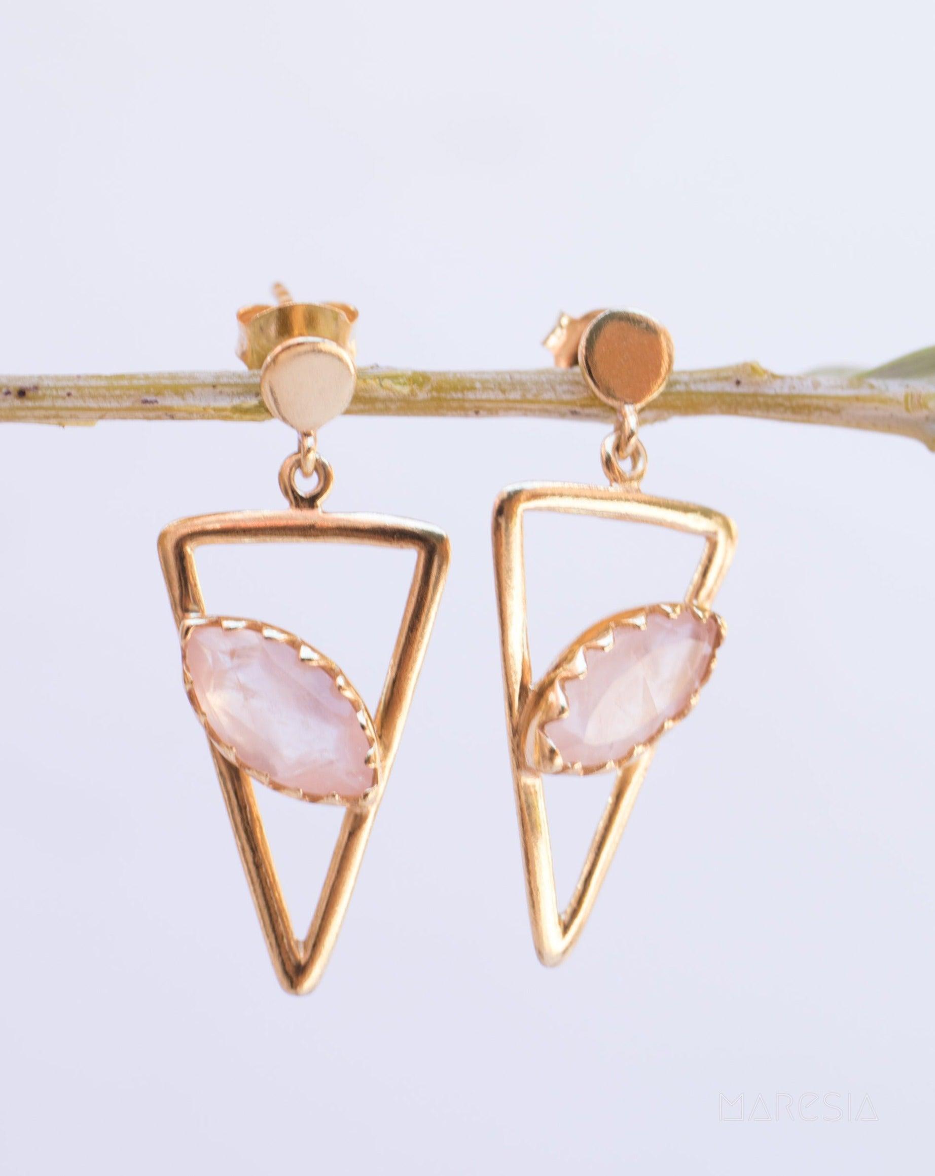 Aqua Chalcedony, Ruby, Blue Chalcedony, Rose quartz Triangle Earrings ~Gold Vermeil (Gold Plated over Sterling Silver)~ ME061