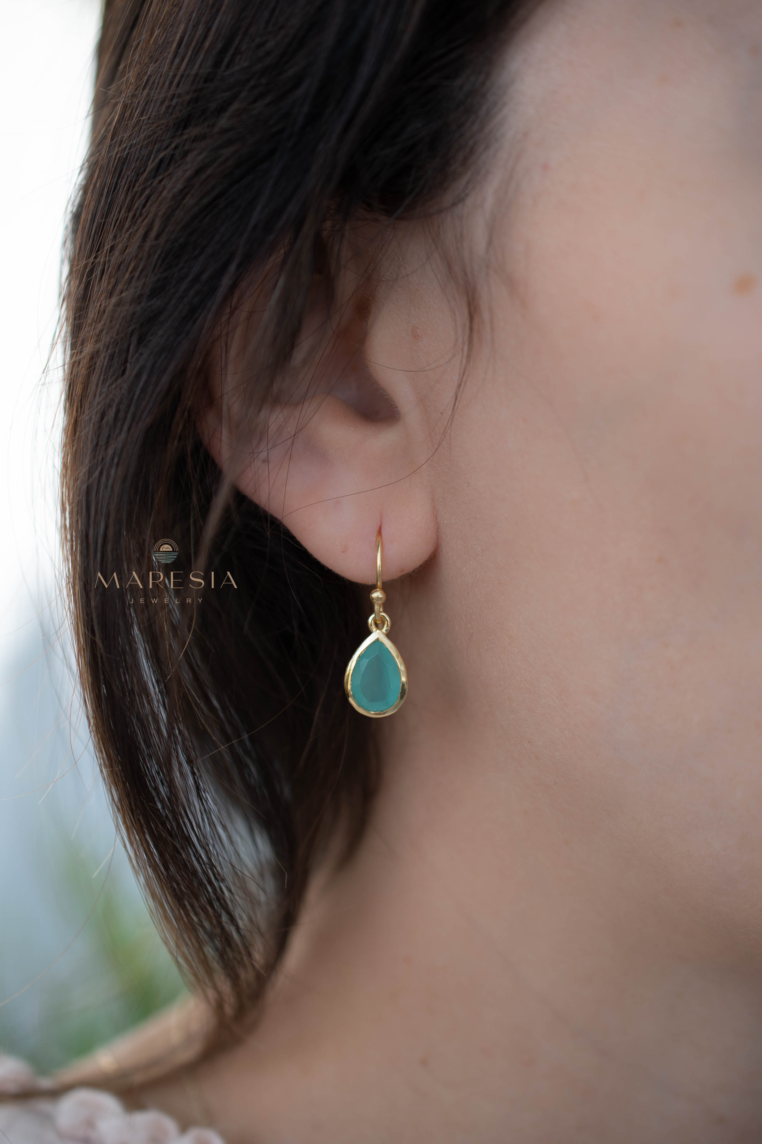 Aqua Chalcedony Tear Drop Earrings ~ Jewelry ~ 18k Gold Plated ~ Natural ~ Minimalist Everyday ~ Gift for Her ~ Boho ~ Hippie ~ ME191