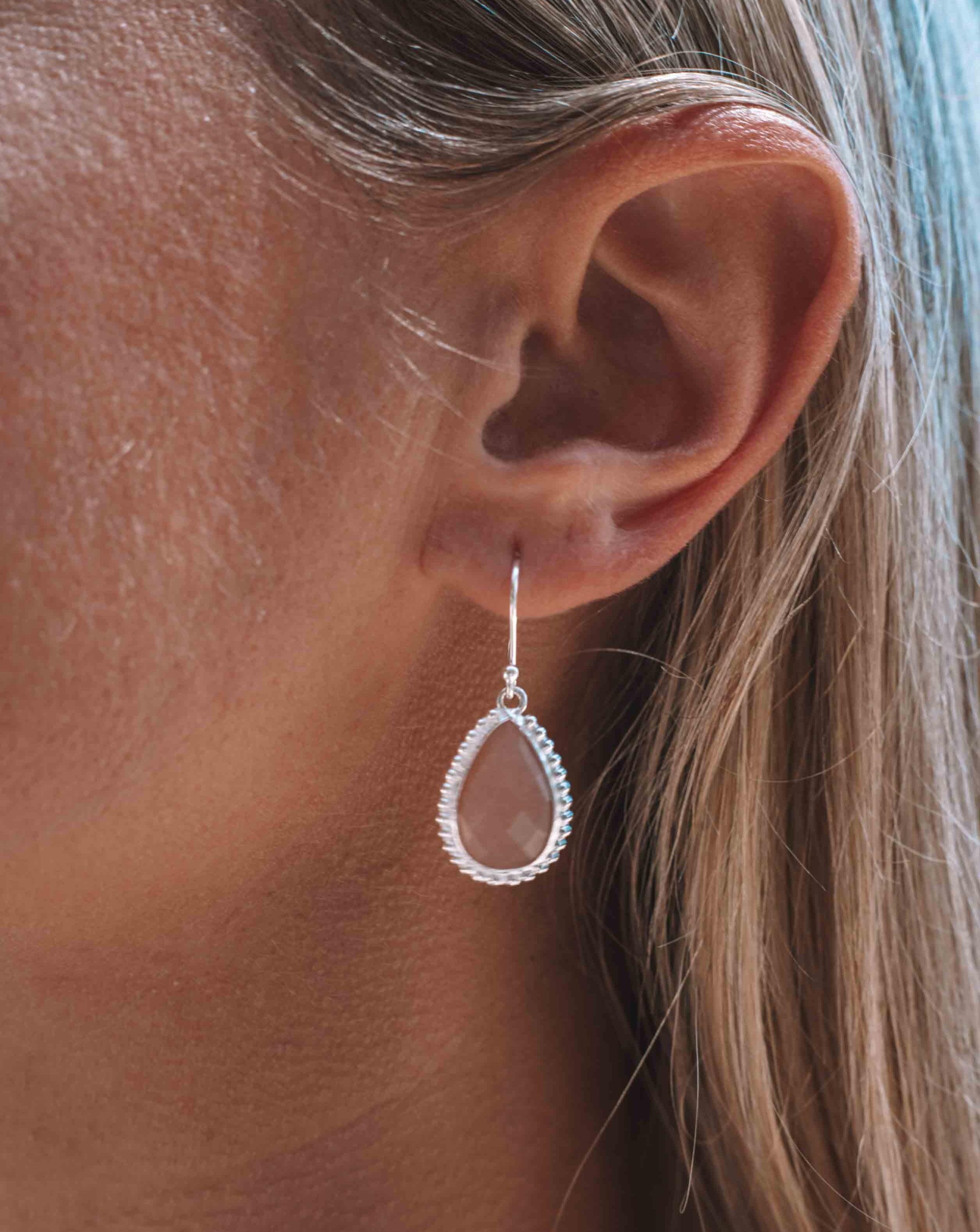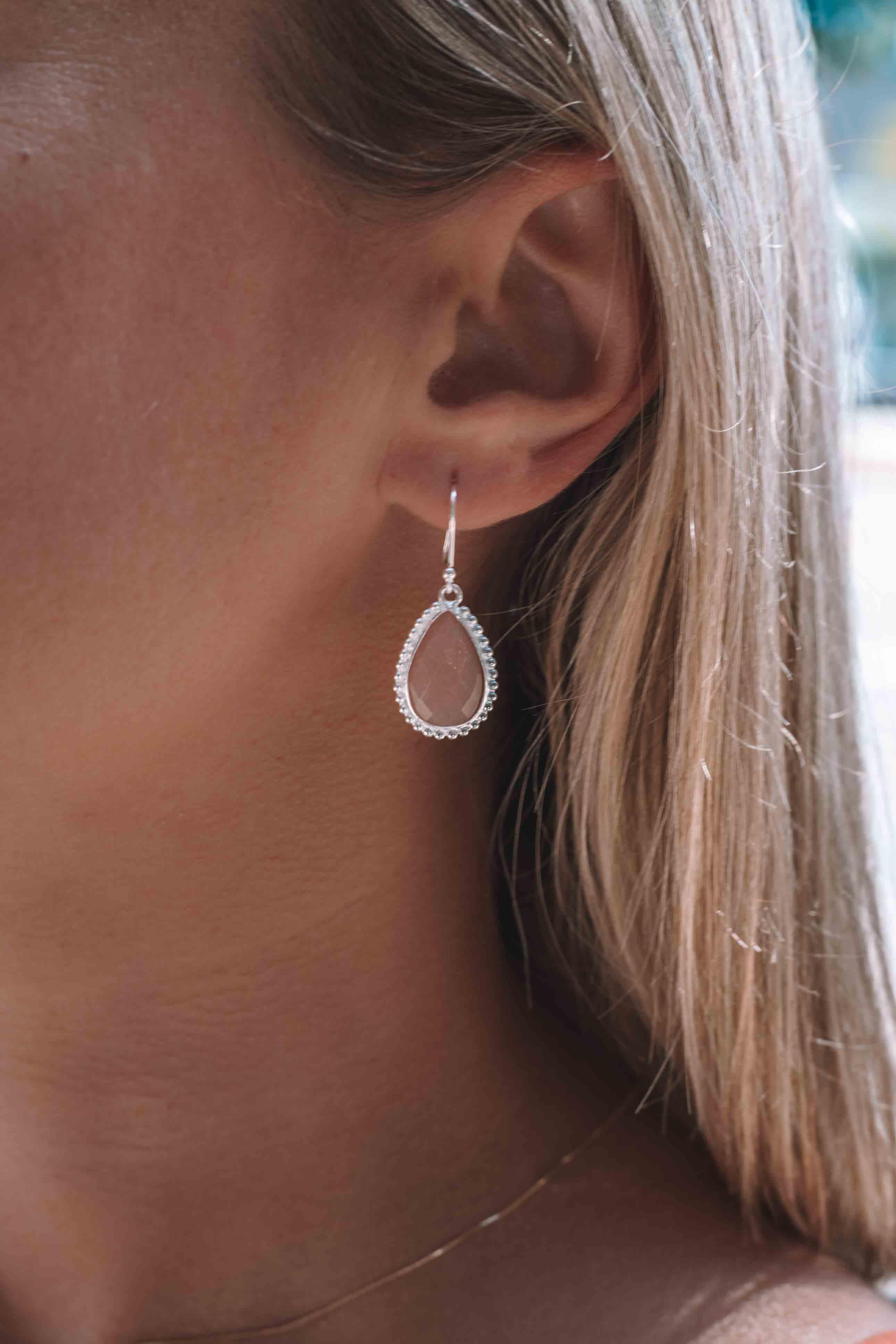 Pink Moonstone Earrings ~ Sterling Silver 925 ~ME193