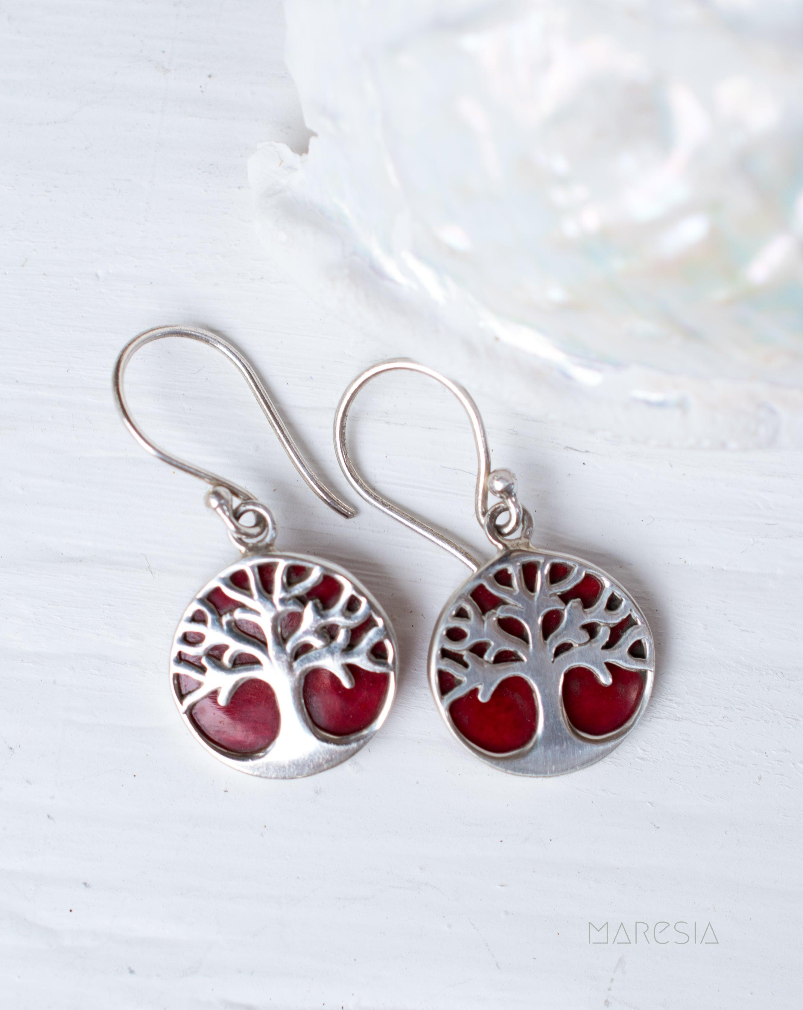 Tree of Life Coral Earrings ~ Sterling Silver 925 ~ SME069