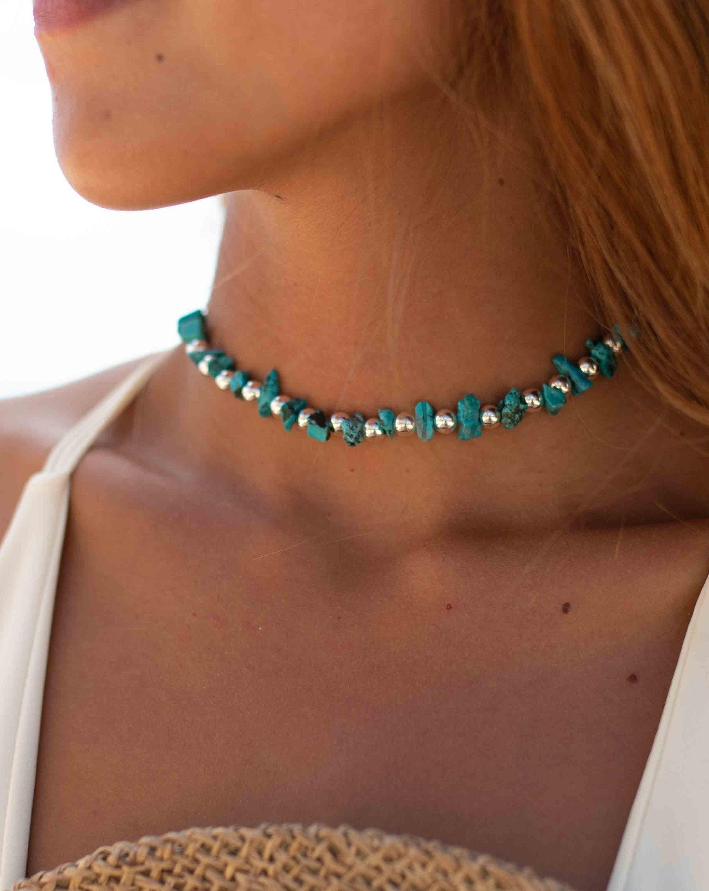 Turquoise necklace~ Sterling Silver 925 ~ Choker ~ Jewelry ~ Gift For Her ~ Minimalist~ Handmade~ MN093