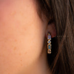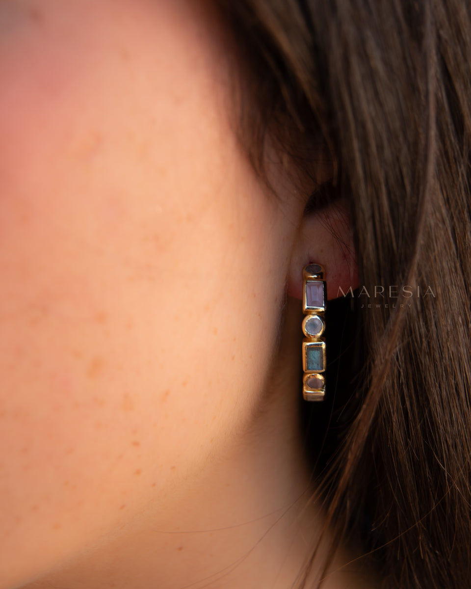 Moonstone, Labradorite & Rose Quartz ~ Hoop Earrings 18k Gold Plated Earrings ~ Gemstone ~ Post ~Boho ~ Handmade~Jewelry ME042