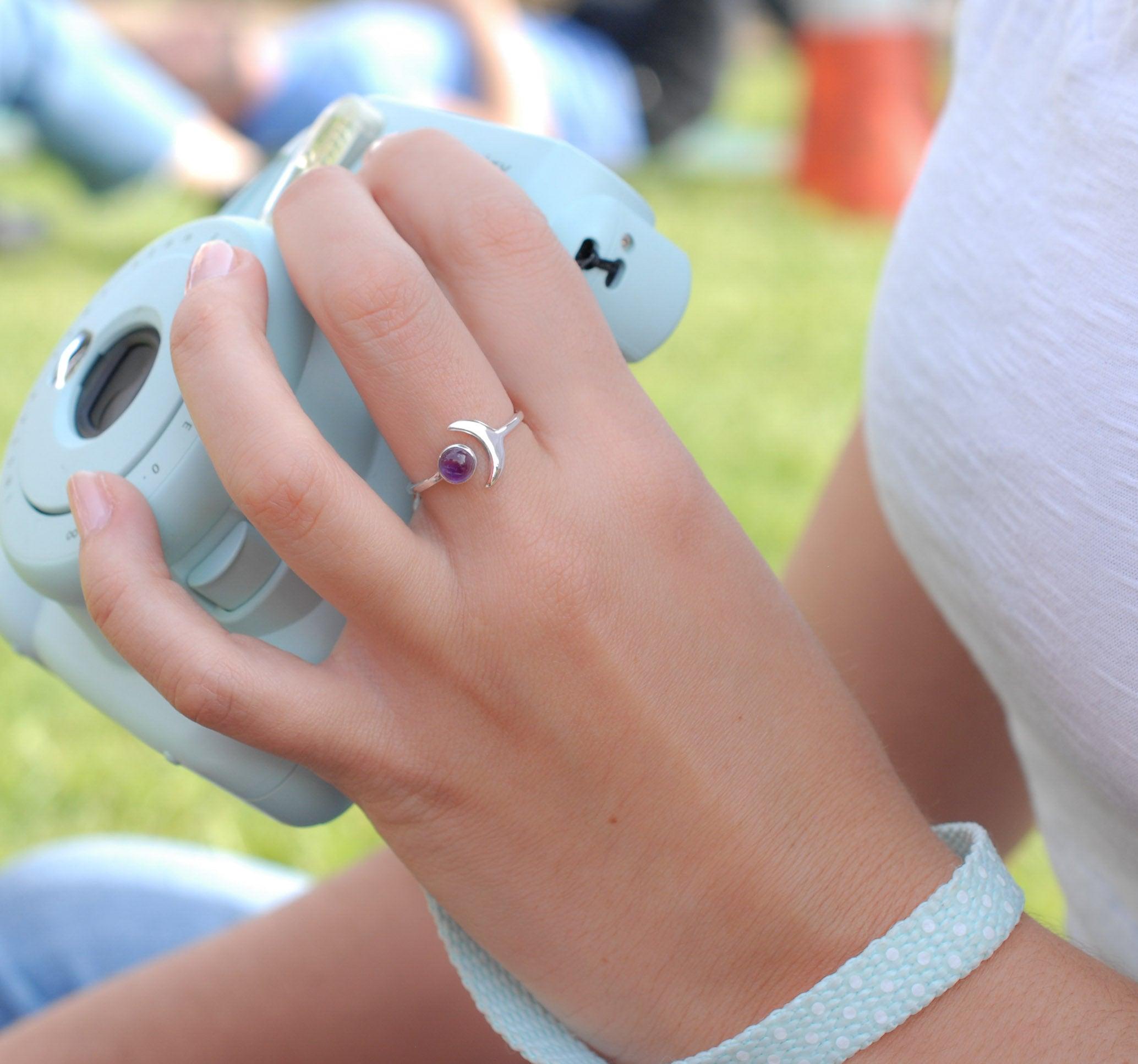 Amethyst half moon Ring ~ Sterling Silver 925 ~ MR128 - Maresia Jewelry