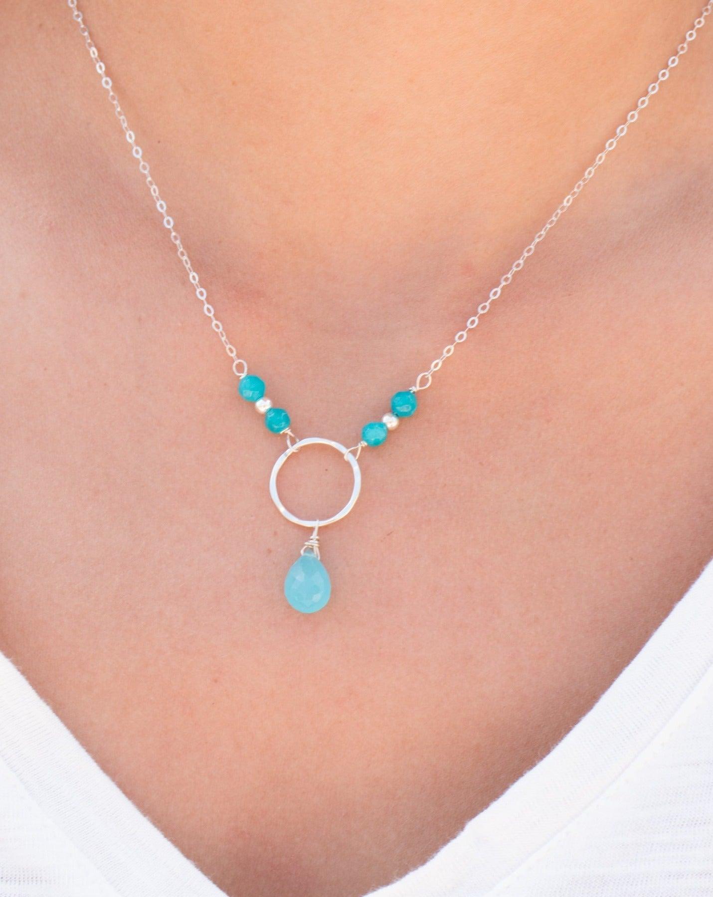 Blue Chalcedony Tear Drop Necklace ~ Sterling Silver 925 - Maresia Jewelry