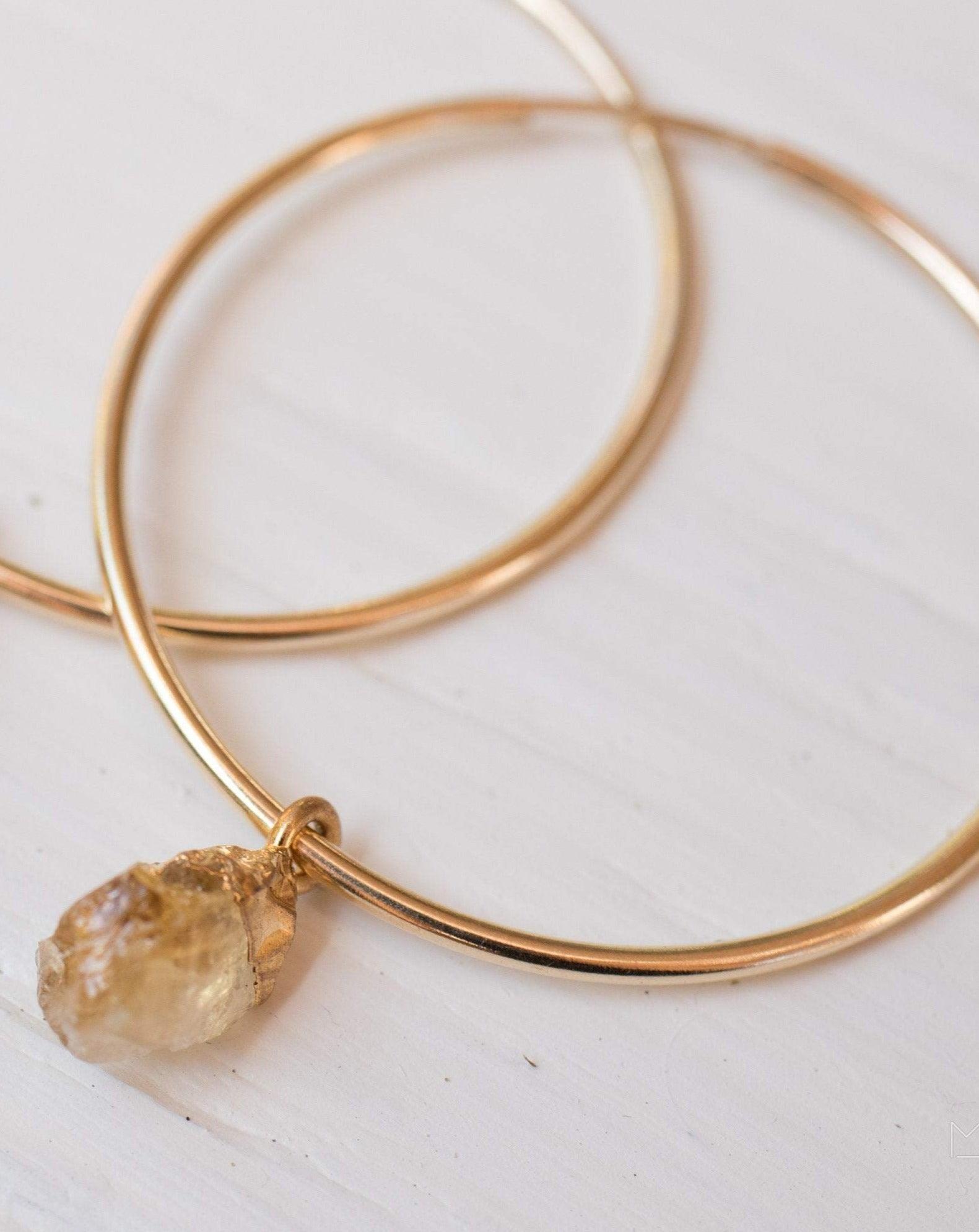 Citrine Gold Hoop Earrings ~ 14k Gold Filled ~ ME031