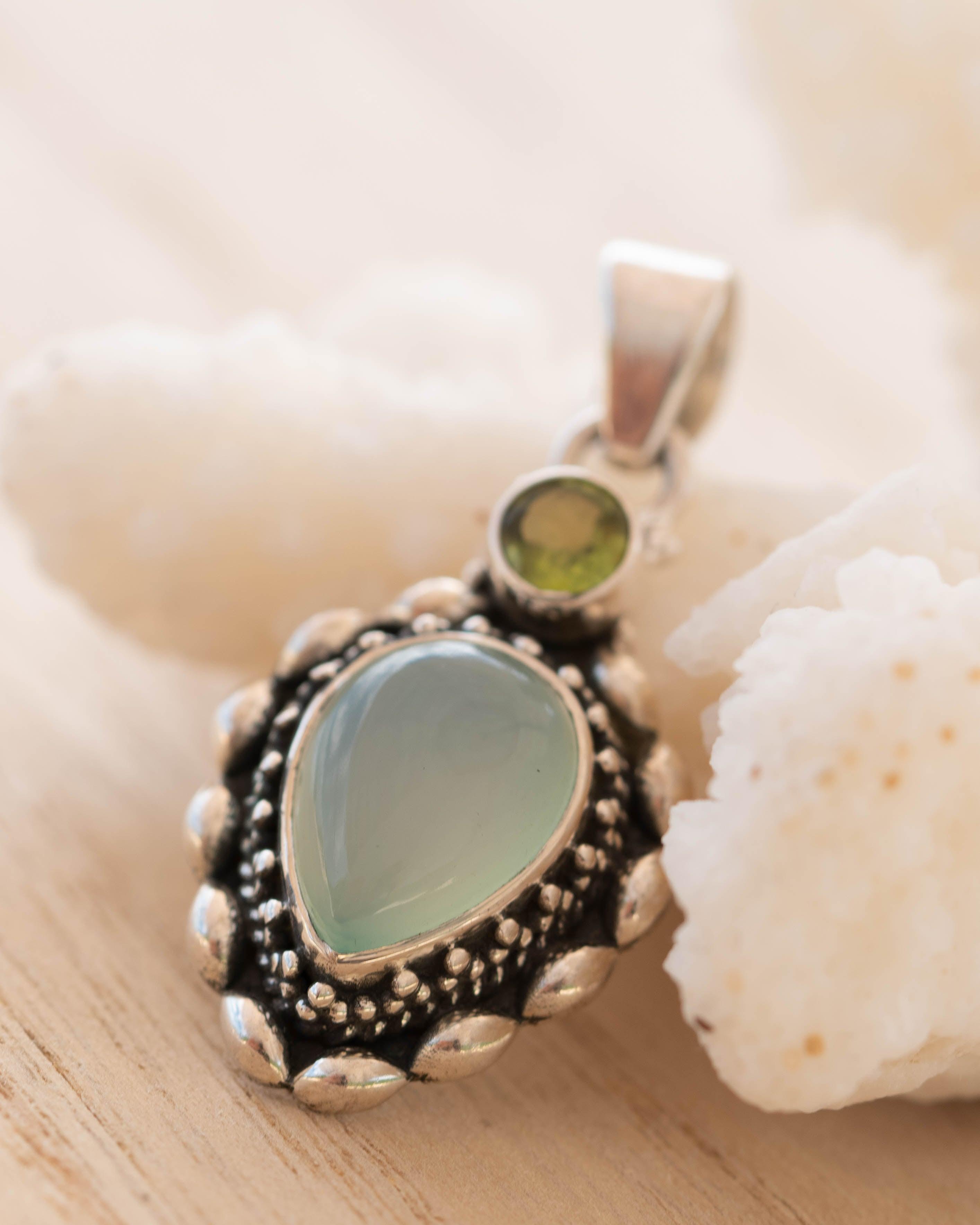 Aqua Chalcedony & Peridot Pendant ~ Sterling Silver 925 ~ SMP039 - Maresia Jewelry