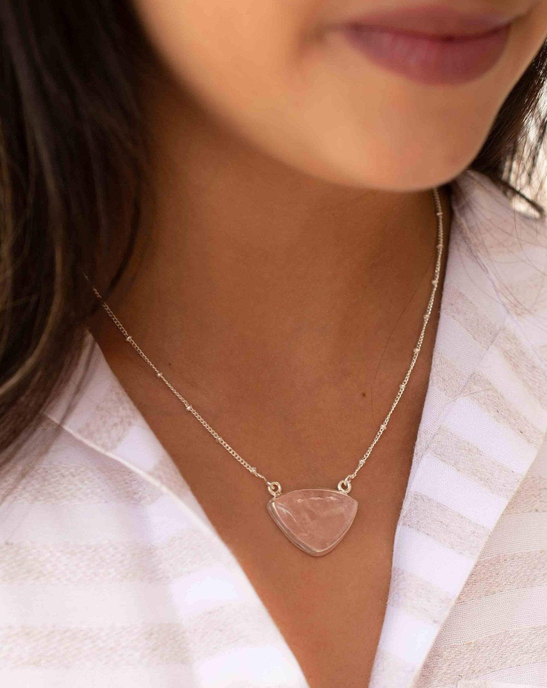 Bruna Necklace ~Rose quartz ~Sterling Silver 925 ~ MN091