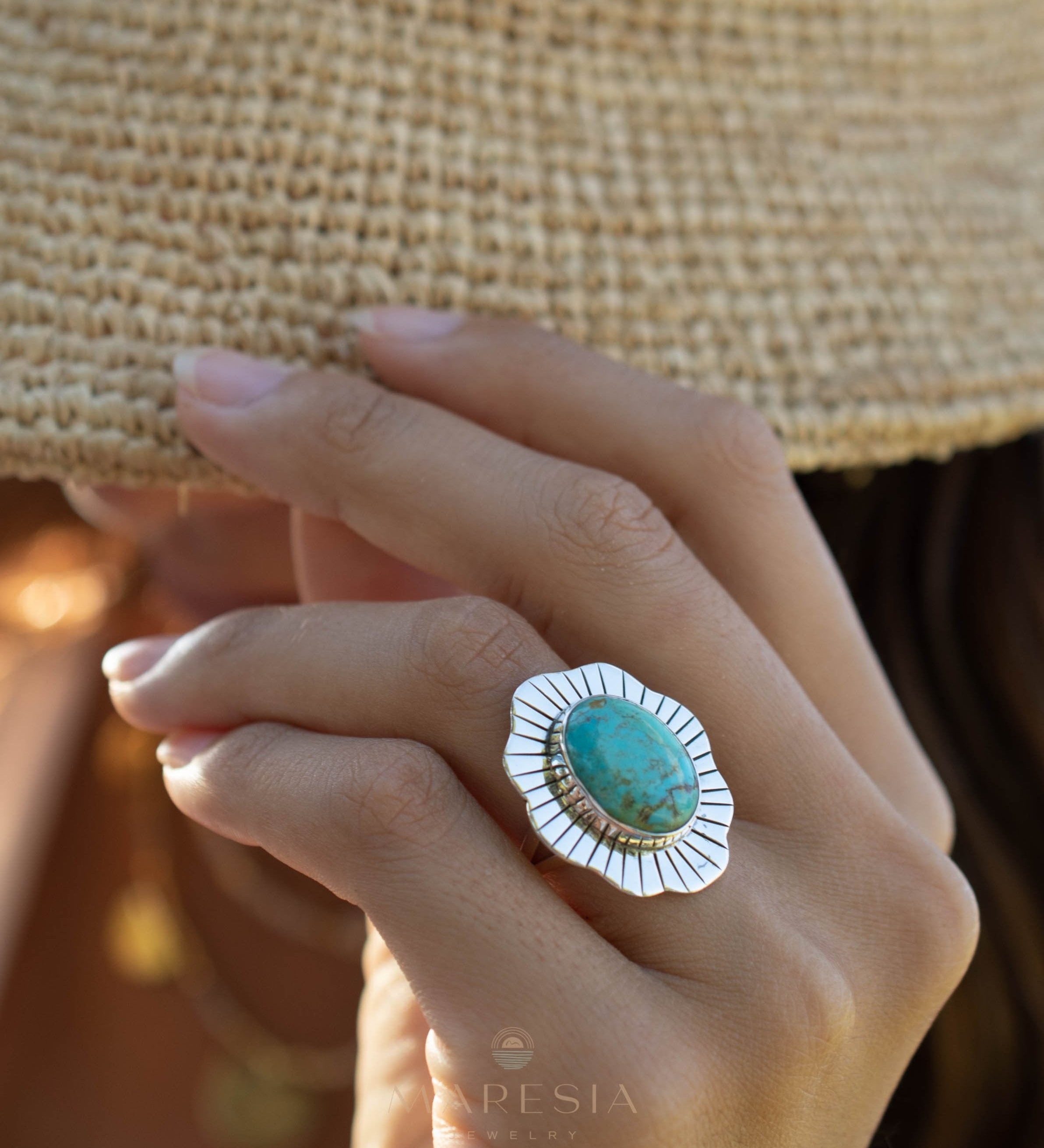 Turquoise Ring ~ oval shape ~Sterling Silver 925 ~ Handmade ~ Gemstone ~ Statement~ December Birthstone Boho MR281