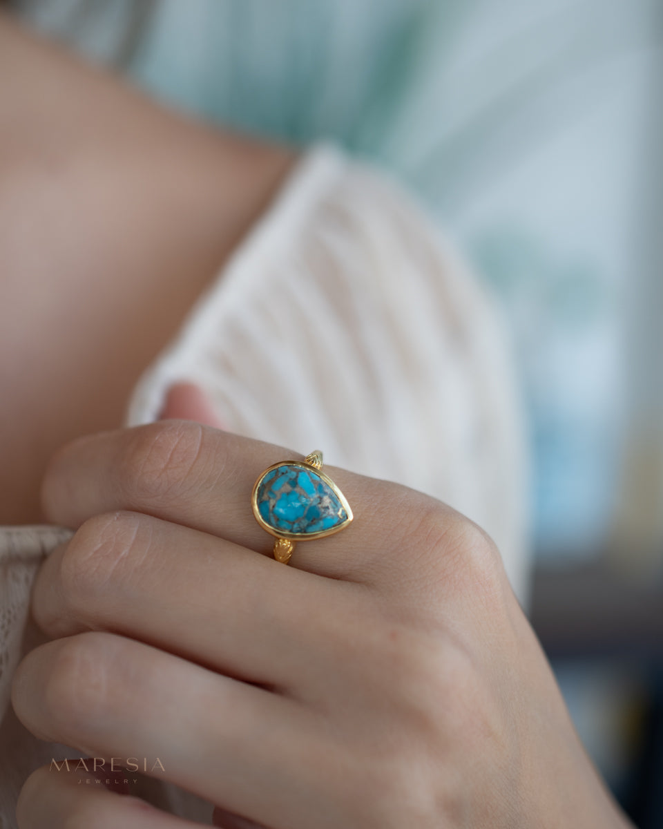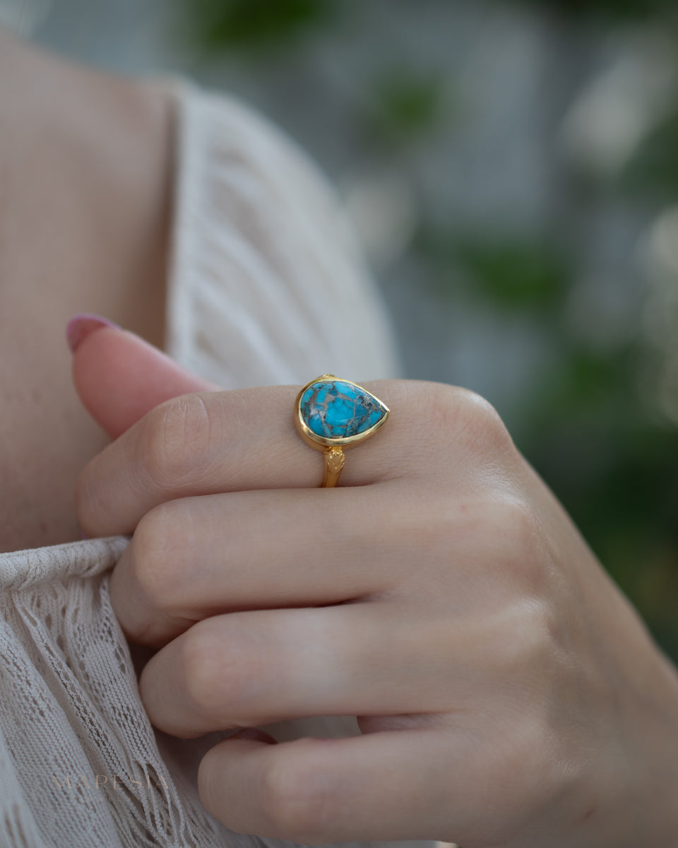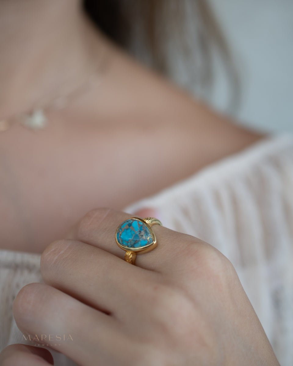 Copper Turquoise Ring ~ 18k Gold Plated ~ MR356
