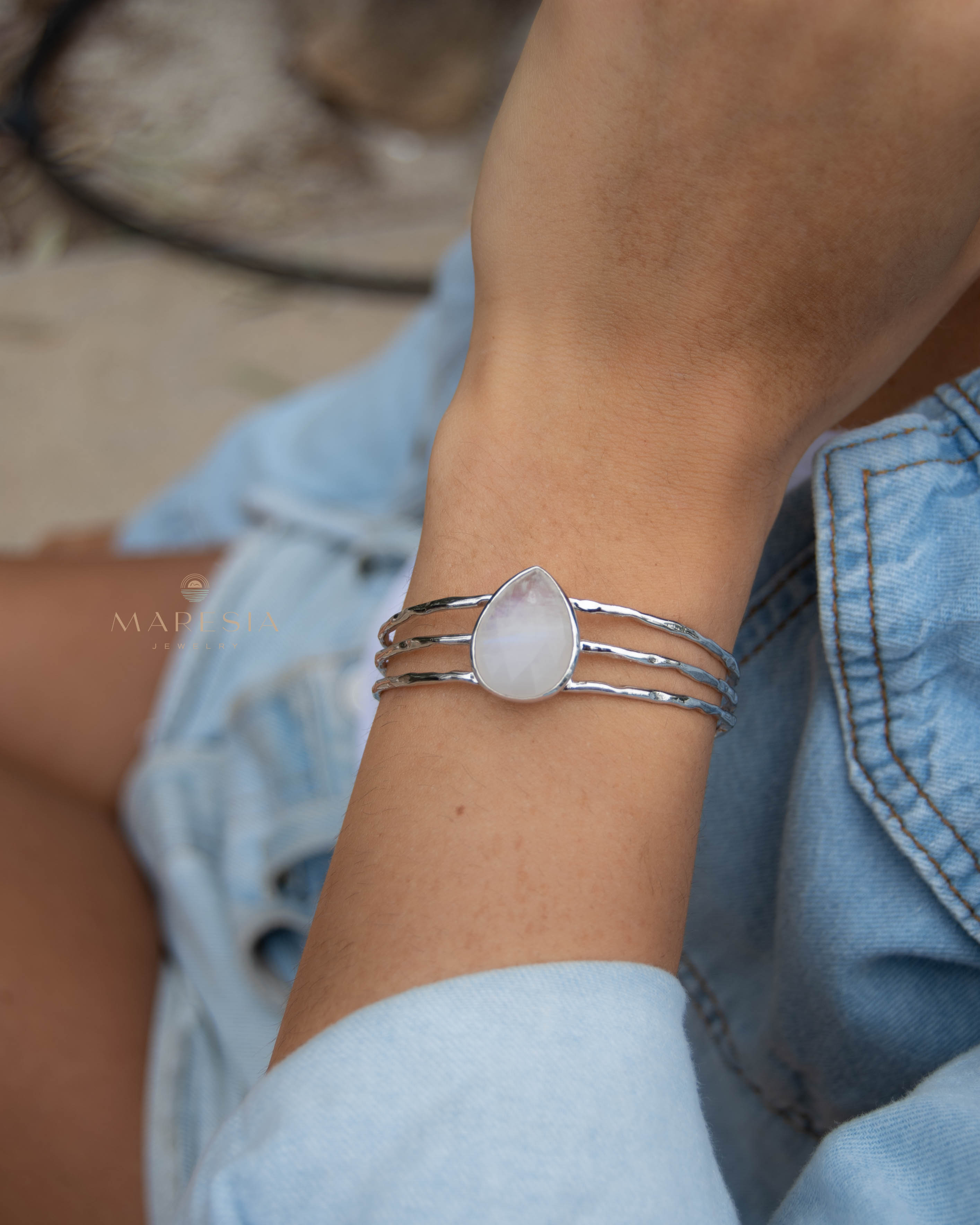 Moonstone Adjustable Bracelet ~ Gold Plated 18k ~ Handmade ~Statement  Hippie ~Bohemian ~Jewelry ~Gift For Her ~Gemstone ~Body MB047