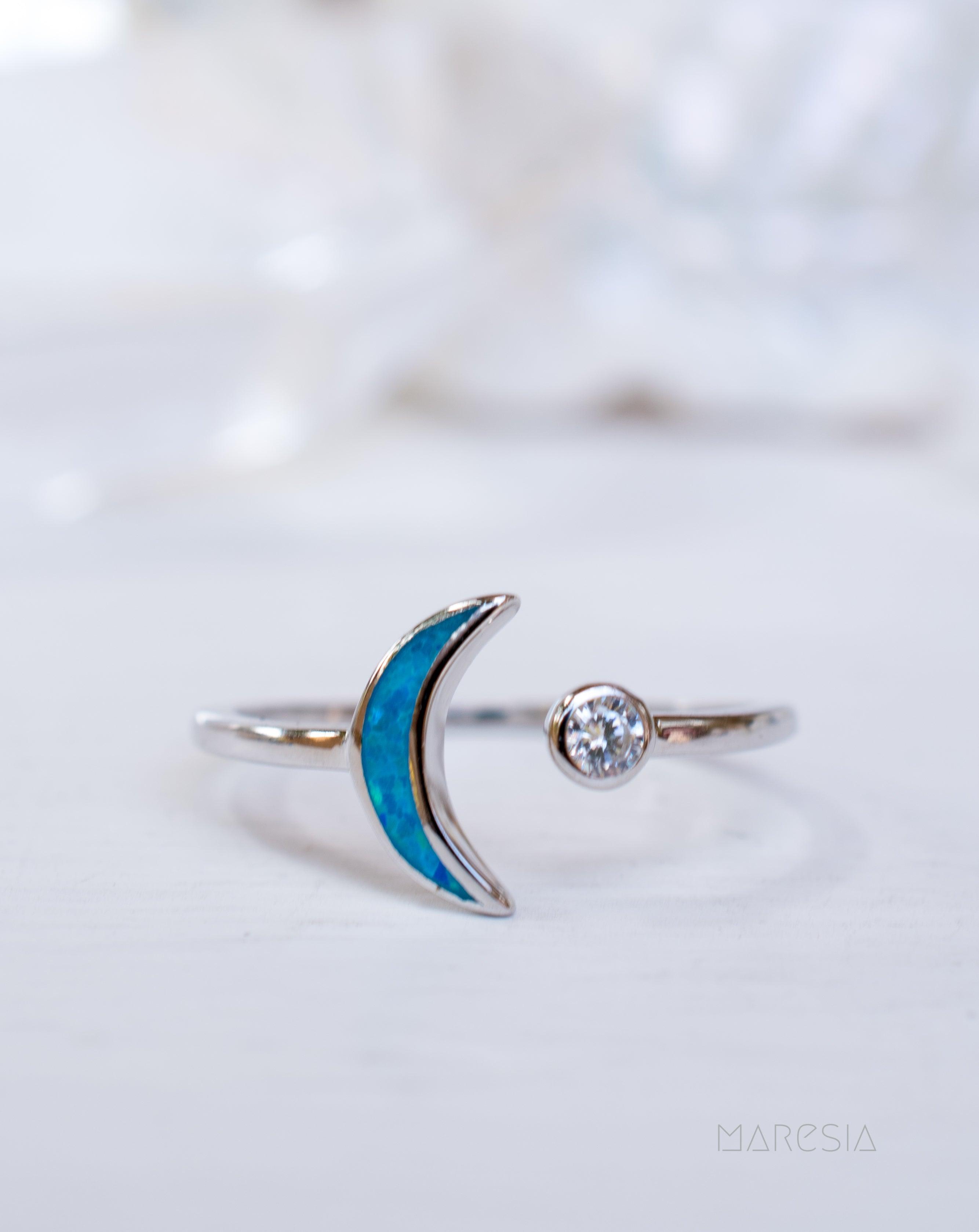 Half Moon & Star Blue Opal Ring ~Sterling Silver 925~ SMR048