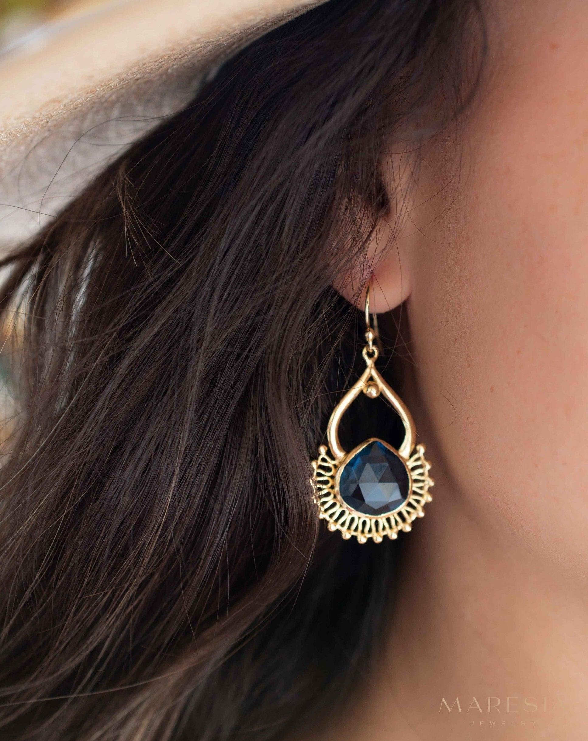 Iolite hydro Earrings ~ Dangle ~ Jewelry ~ 18k Gold Plated ~ Natural ~ Large Earrings ~ Gift for Her ~ Boho ~ Hippie ~ ME184