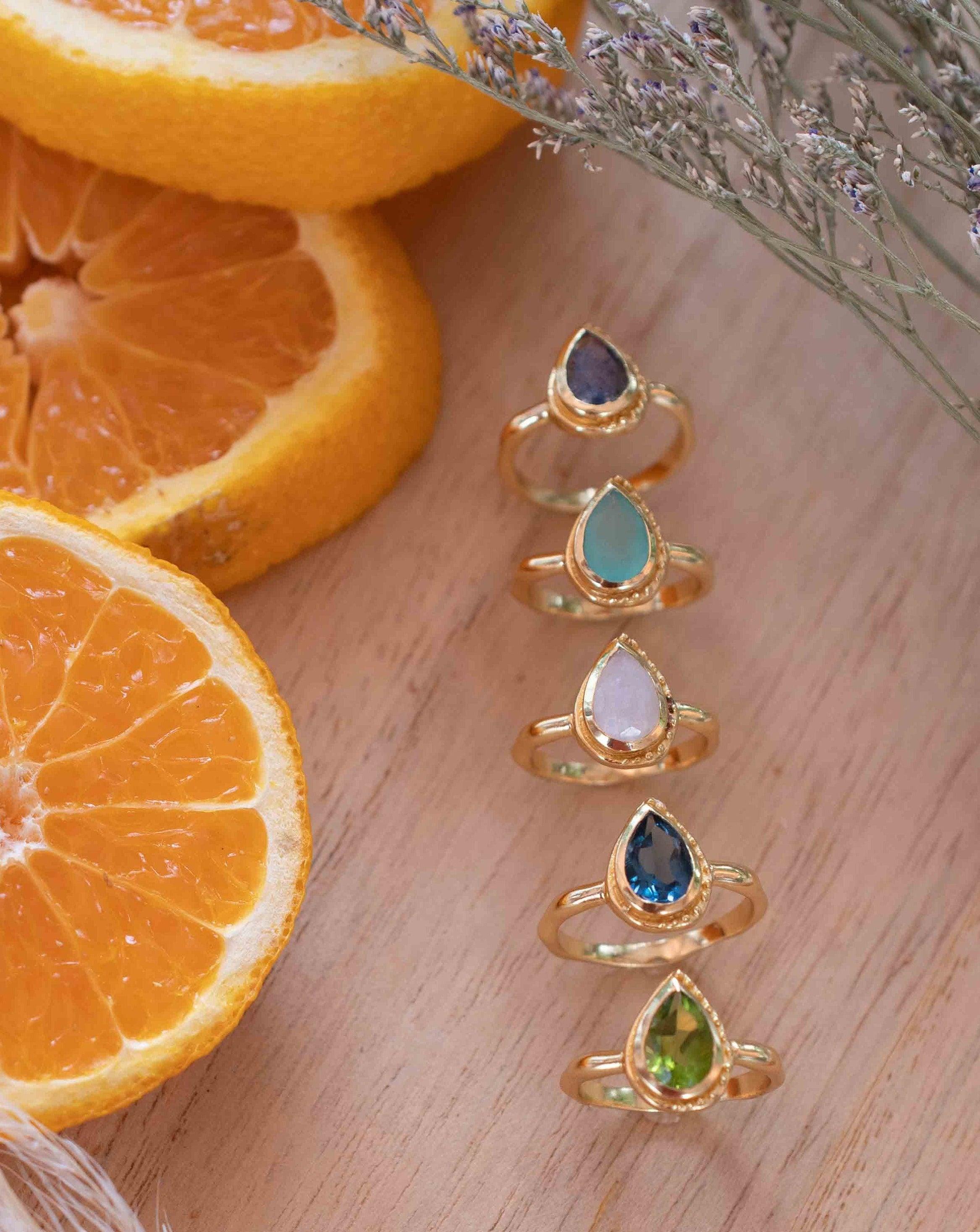 Iolite Hydro Ring ~ Tear Drop Stone ~ 18k Gold Plated ~ Jewelry ~ Handmade ~ Boho ~ Stackable Ring ~ MR313