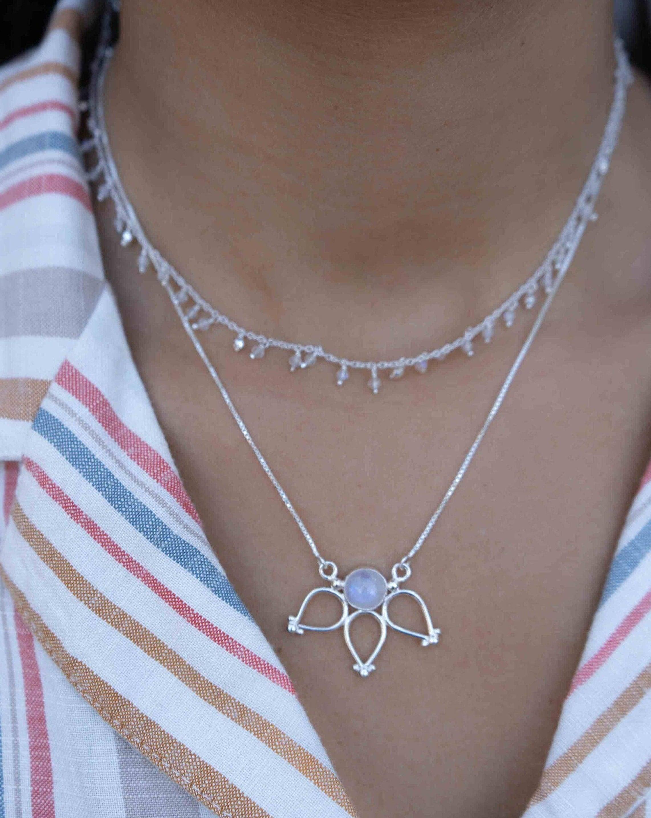 Moonstone Lotus Flower Necklace (only) ~ Sterling Silver 925 ~Jewelry  ~ Minimalist~ Handmade~ Thin Chain~ Delicate ~Layered ~ MN077