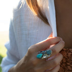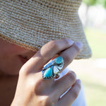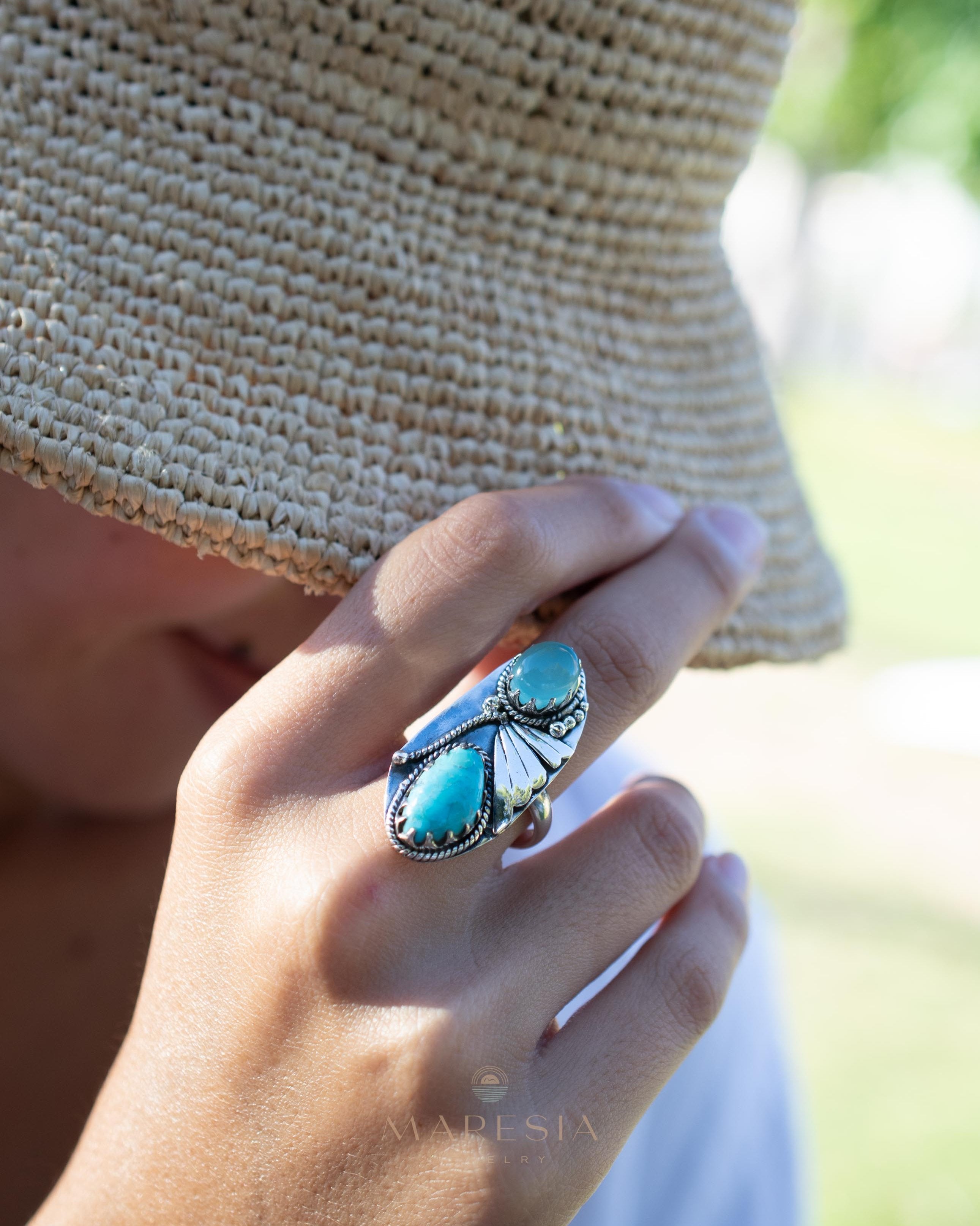 Turquoise & Aqua Chalcedony Ring ~ Sterling Silver 925 ~ Handmade ~ Statement ~Hippie ~Bohemian ~Jewelry ~Gemstone~December Birthstone*MR292