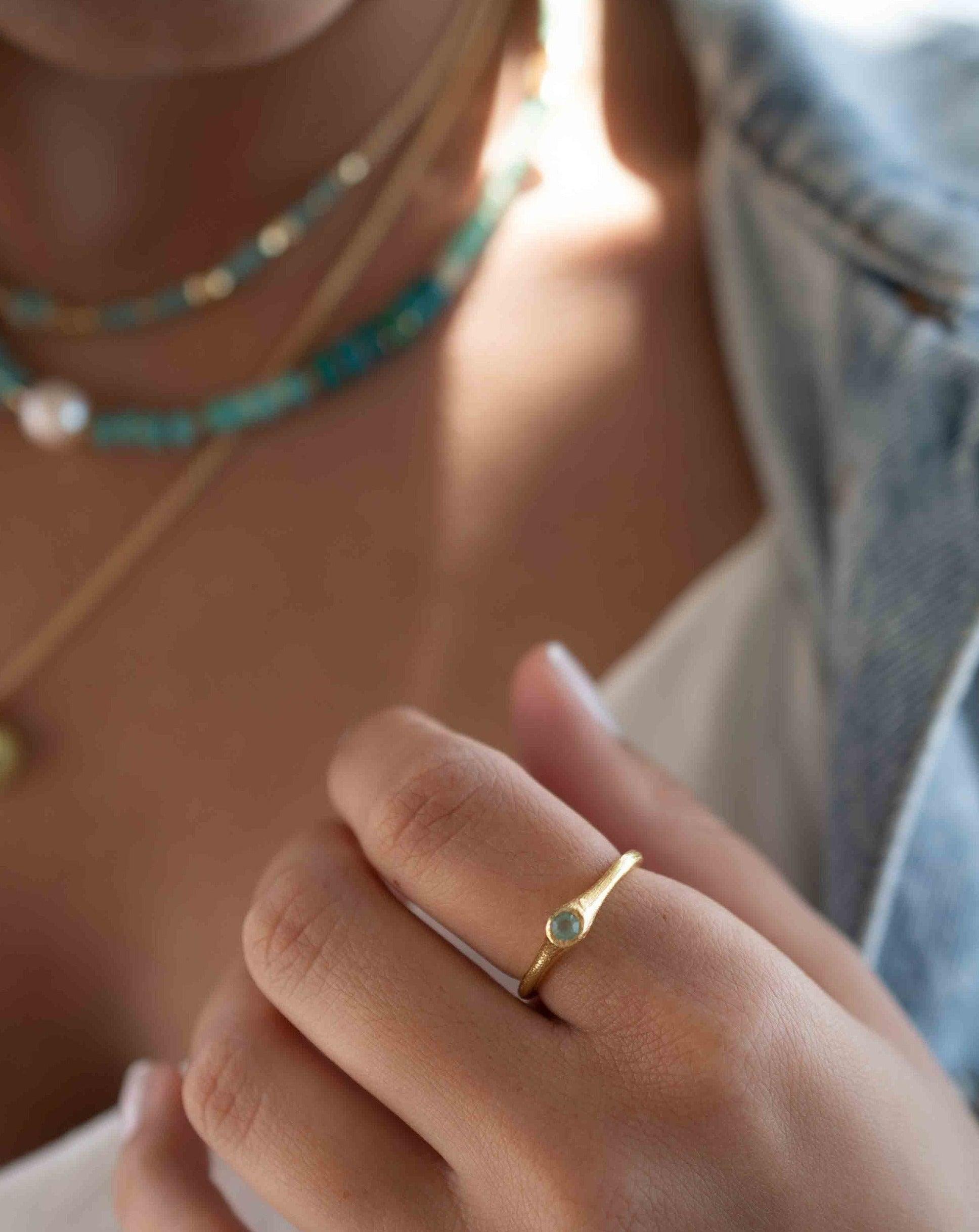 Aqua Chalcedony Gold Ring ~ Delicate ~ 18k Gold Plated ~ Handmade ~ Gemstone~Statement ~Everyday~ Hippie~Bohemian~Stackable ~MR331