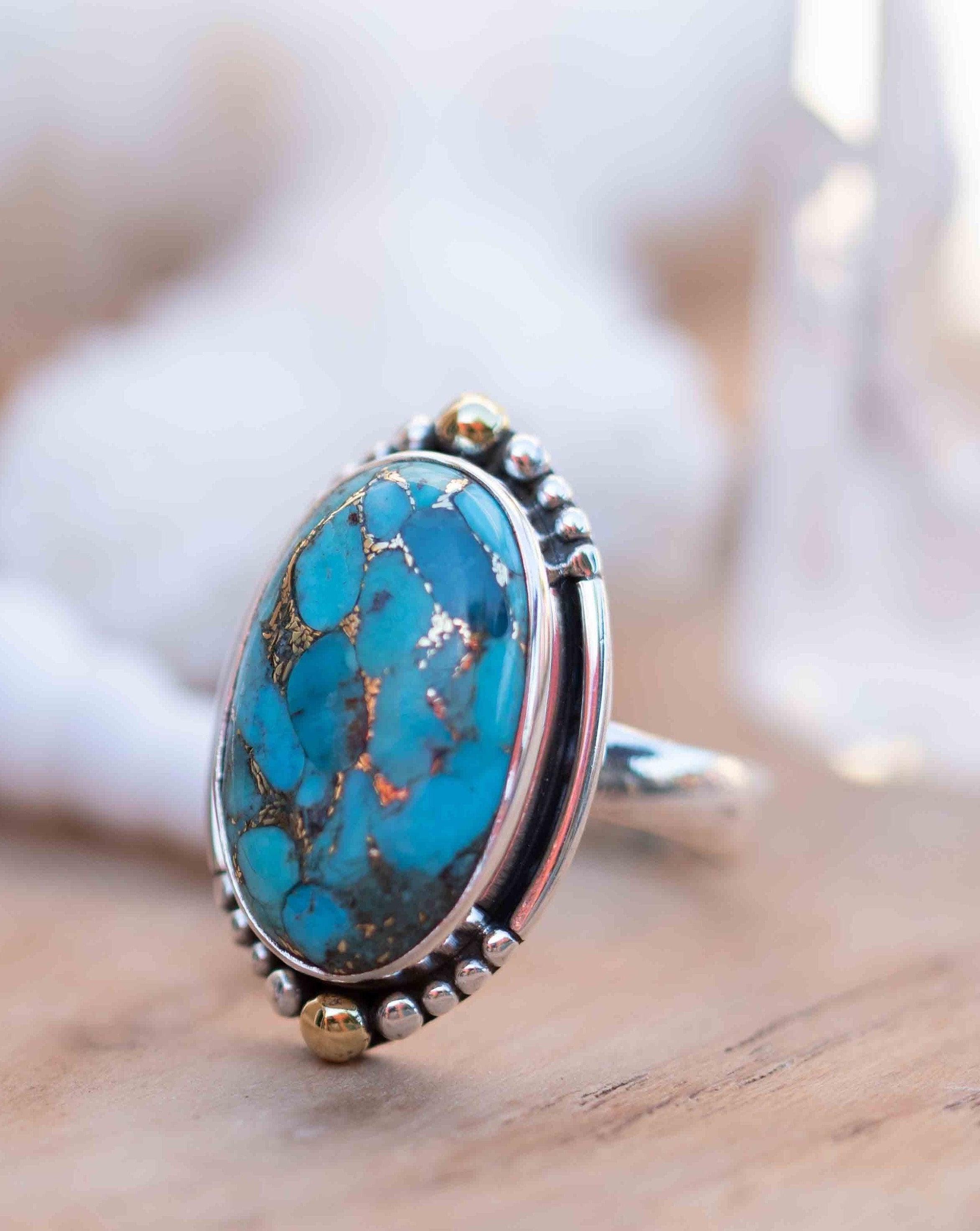 Copper Turquoise Ring ~ Mix metals ~ oval shape ~Sterling Silver 925 and brass ~ Handmade ~ Gemstone ~ Statement~ December Birthstone~ MR291