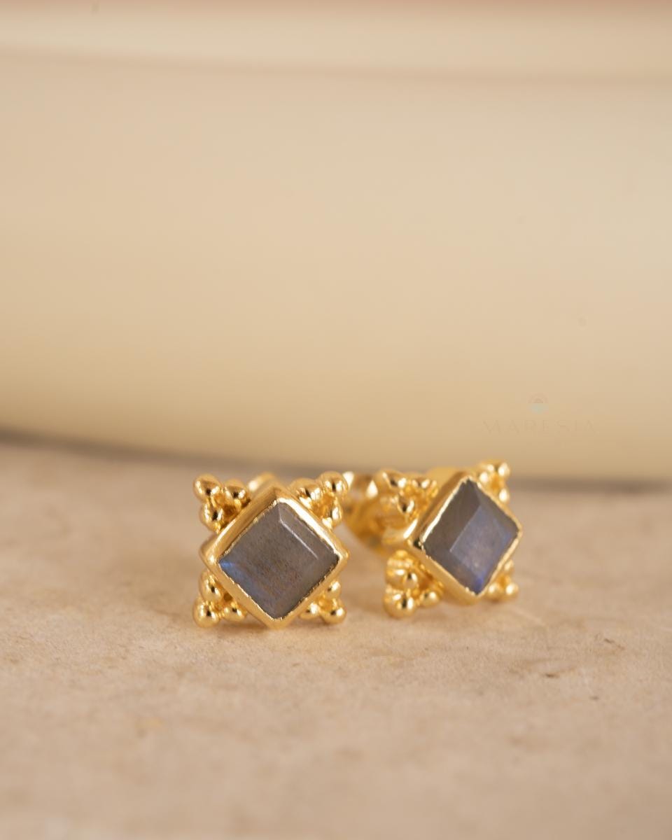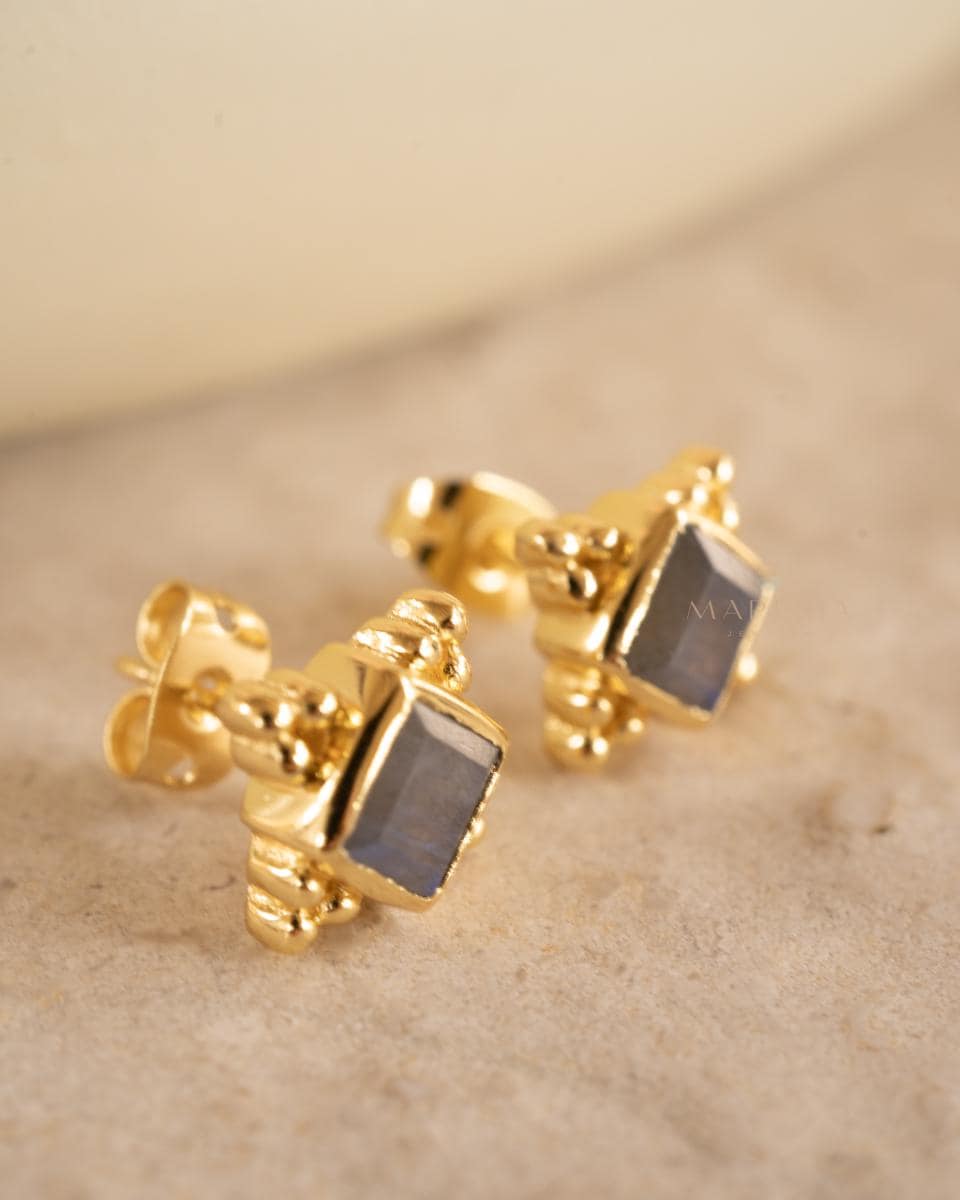 Labradorite Earrings ~ Stud ~ Jewelry ~ 18k Gold Plated ~ Natural ~ Minimalist Everyday ~ Gift for Her ~ Boho ~ Hippie ~ ME084