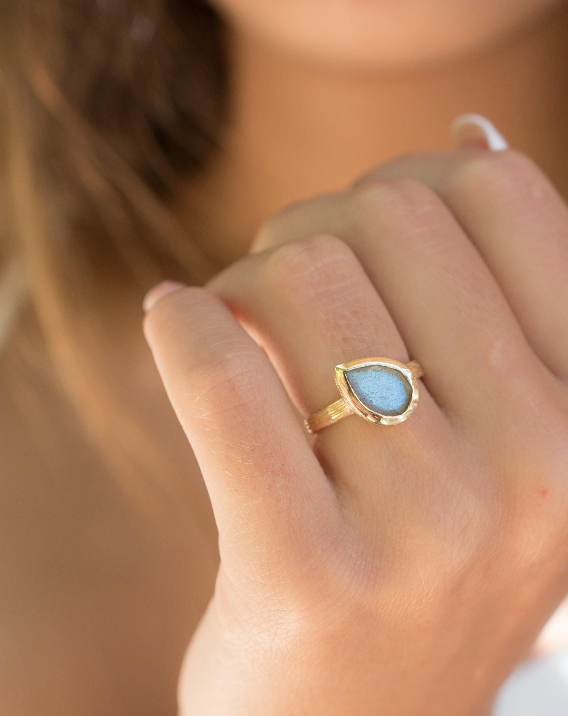 Lica Rainbow Labradorite Tear Drop Ring ~ 18k Gold Plated ~ SMR127