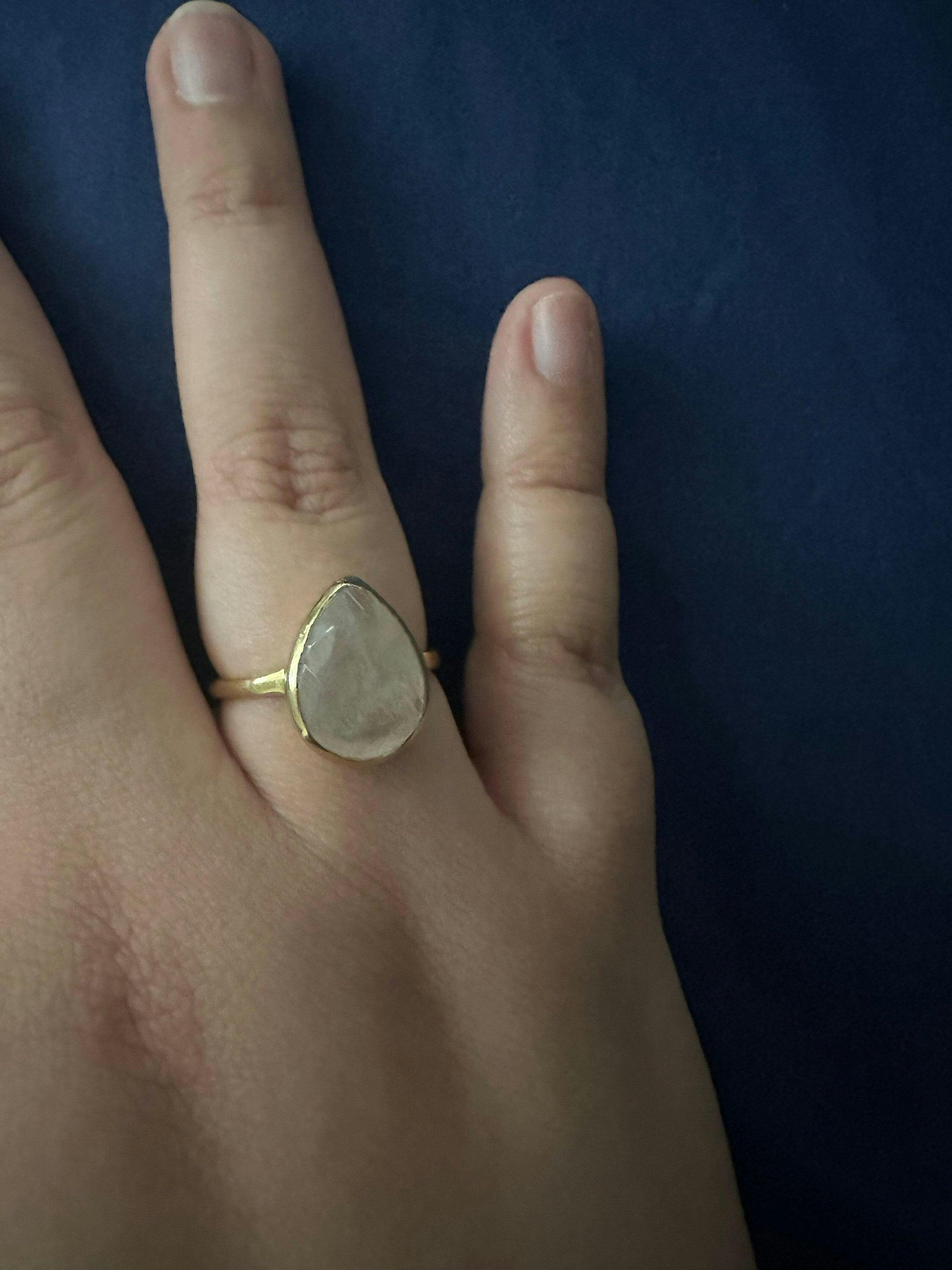 Lia Rose Quartz Tear Drop Ring ~ 18k Gold Plated ~ MR148