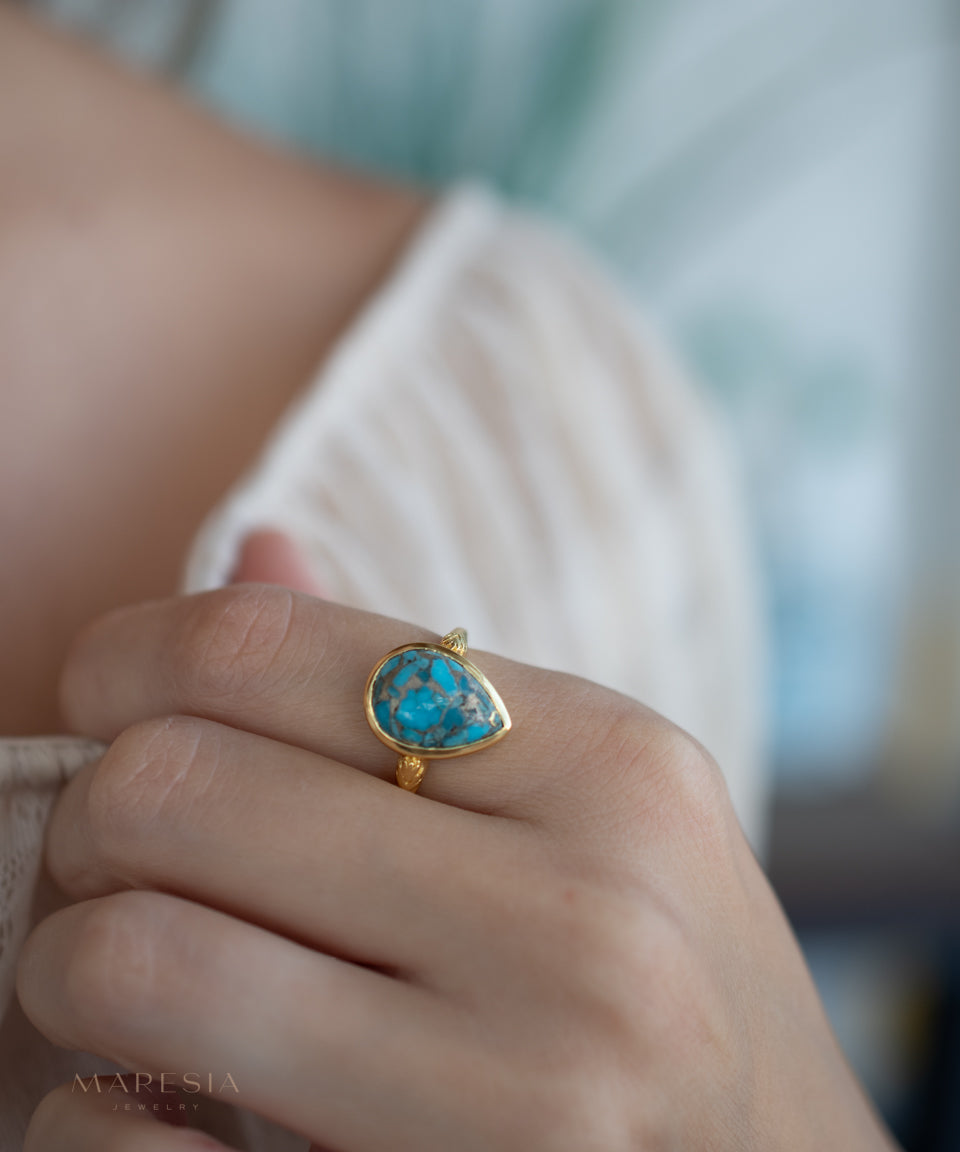 Larimar Ring ~ Statement ~Gold Plated over Sterling Silver 925 ~ Gemstone ~ Semi Precious Stone ~ Blue ~ Natural ~ Organic ~Thin Band~MR349