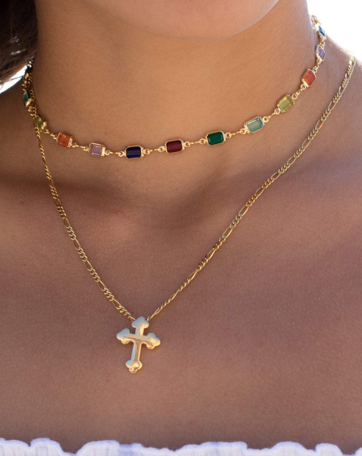 This listing is for the cross necklace ONLY. The multi colored choker is not included.