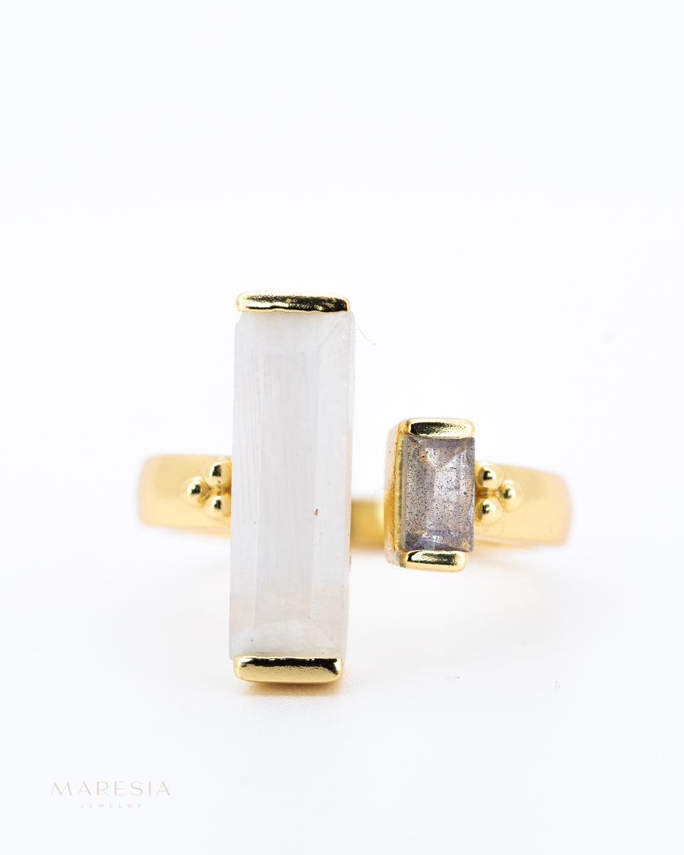 Moonstone & Labradorite ~ Ring ~ 18k Gold Plated ~ MR316