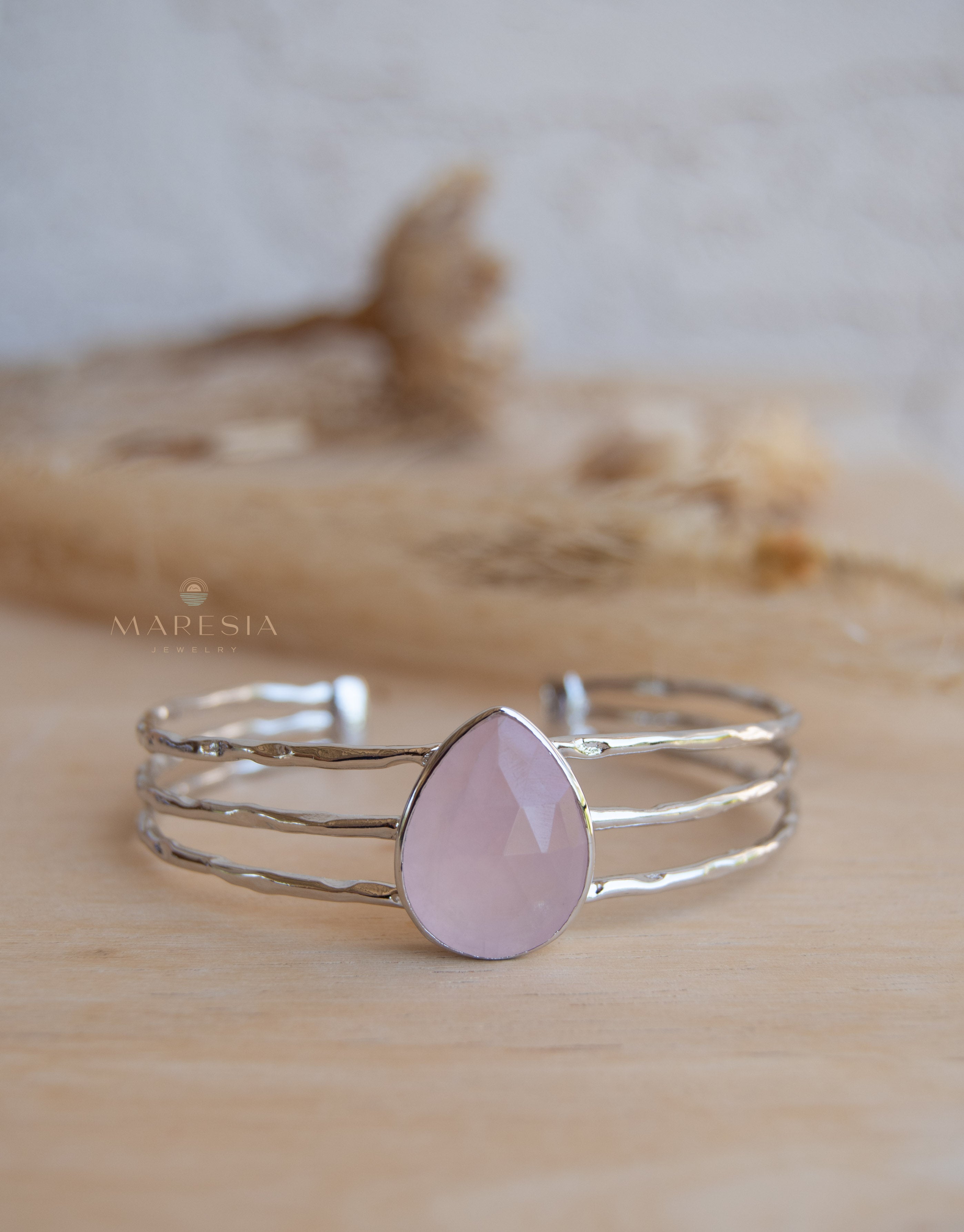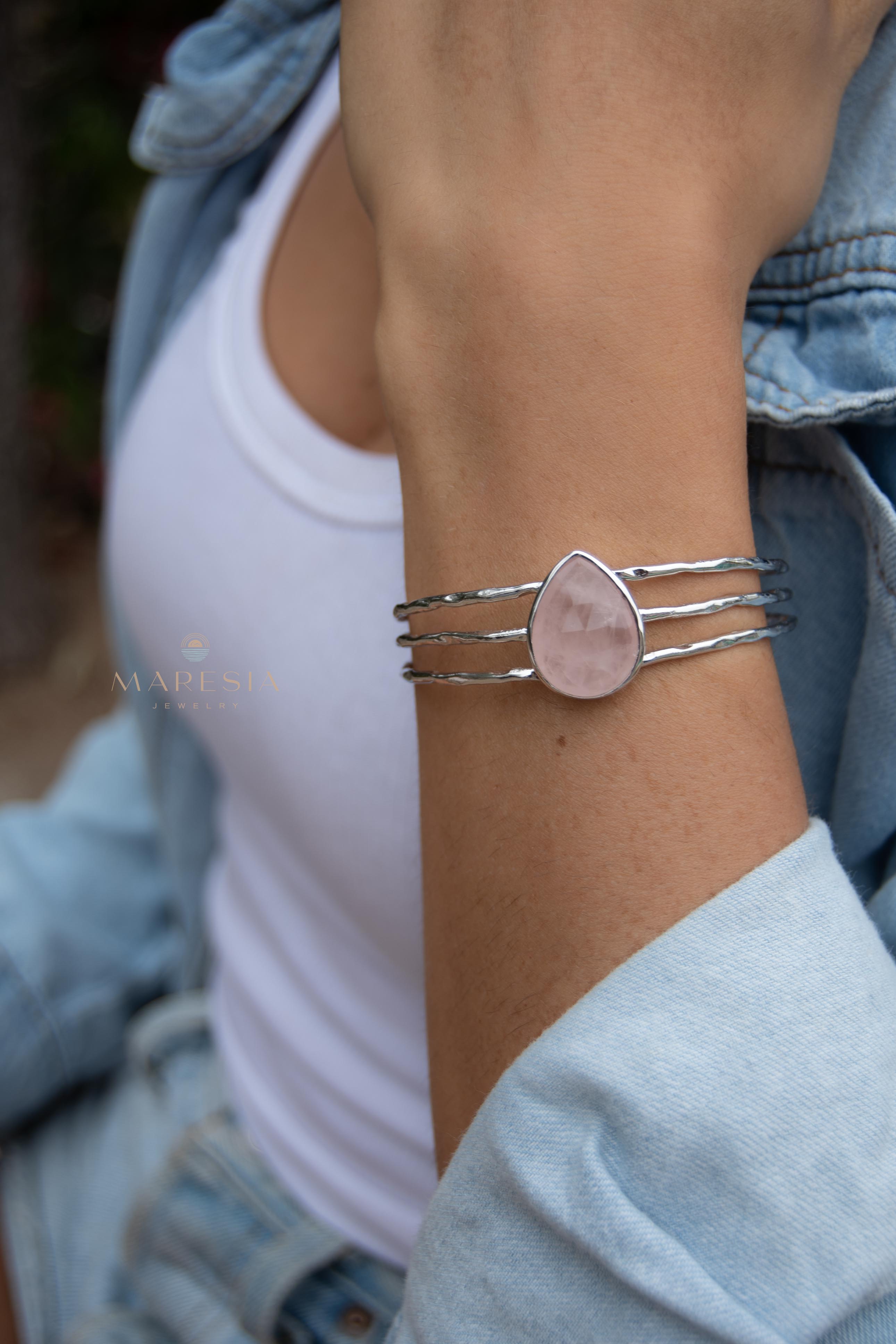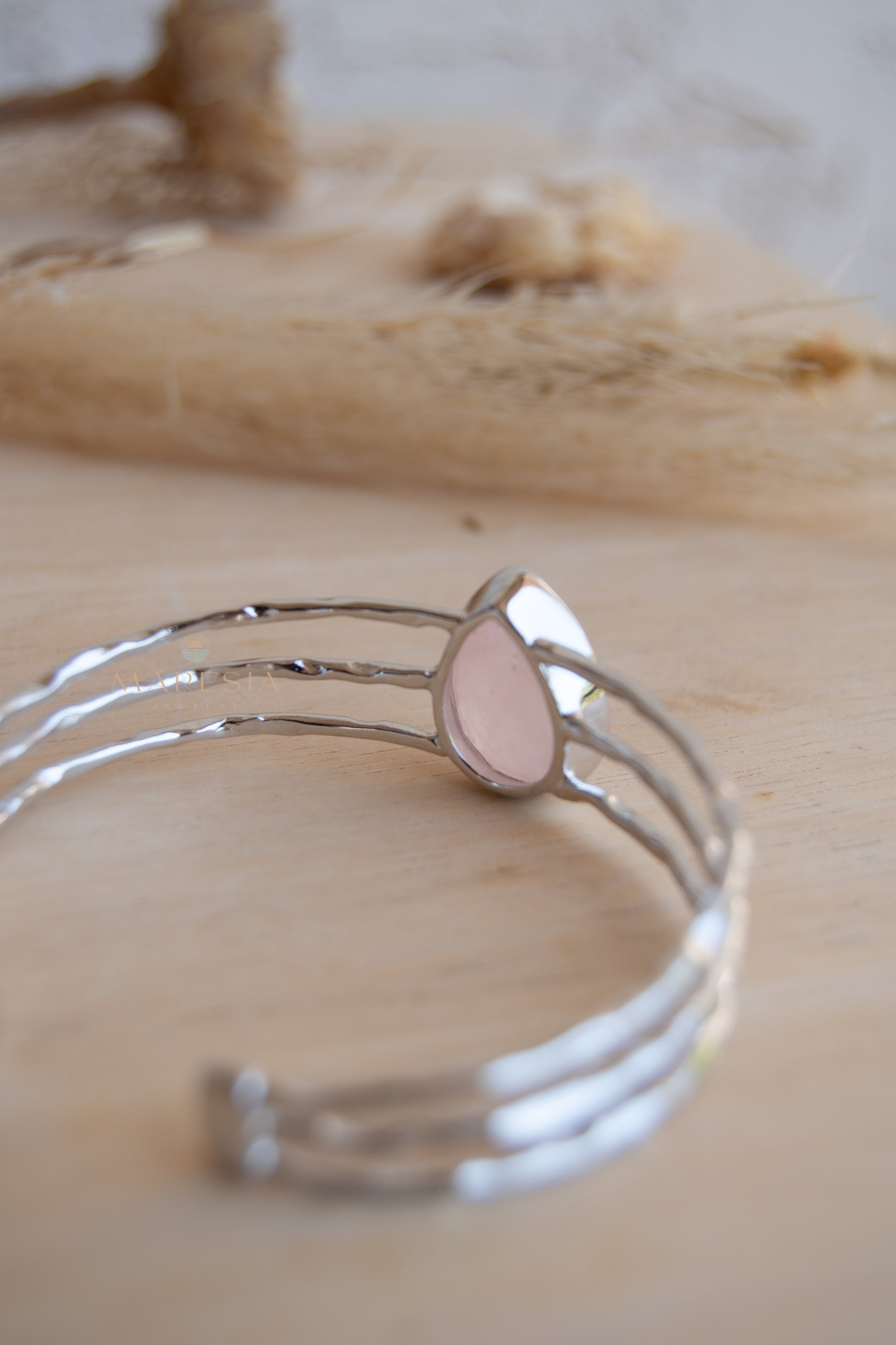 Rose quartz Adjustable Bracelet ~ Gold Plated 18k ~ Handmade ~Statement  Hippie ~Bohemian ~Jewelry ~Gift For Her ~Gemstone ~Body MB045