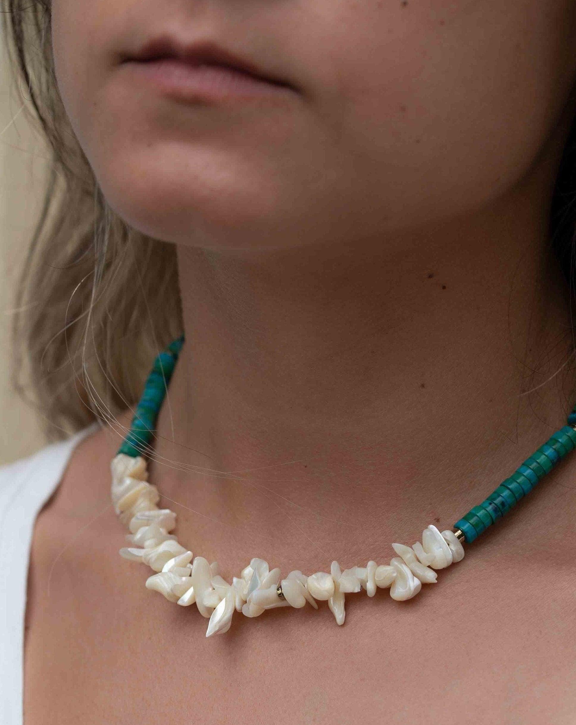 Mother-of-Pearl and Jasper turquoise Choker ~ Sterling Silver 925 or Gold Filled ~ MN102