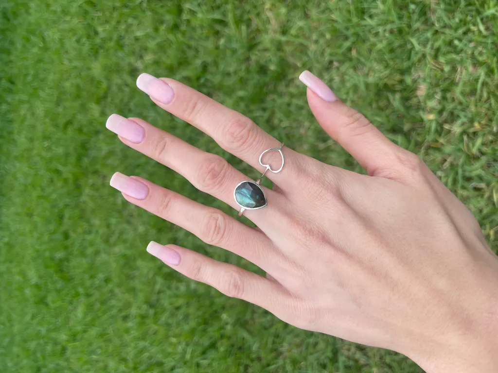 Lia Rainbow Labradorite Tear Drop Ring ~ Sterling Silver 925 ~ MR225