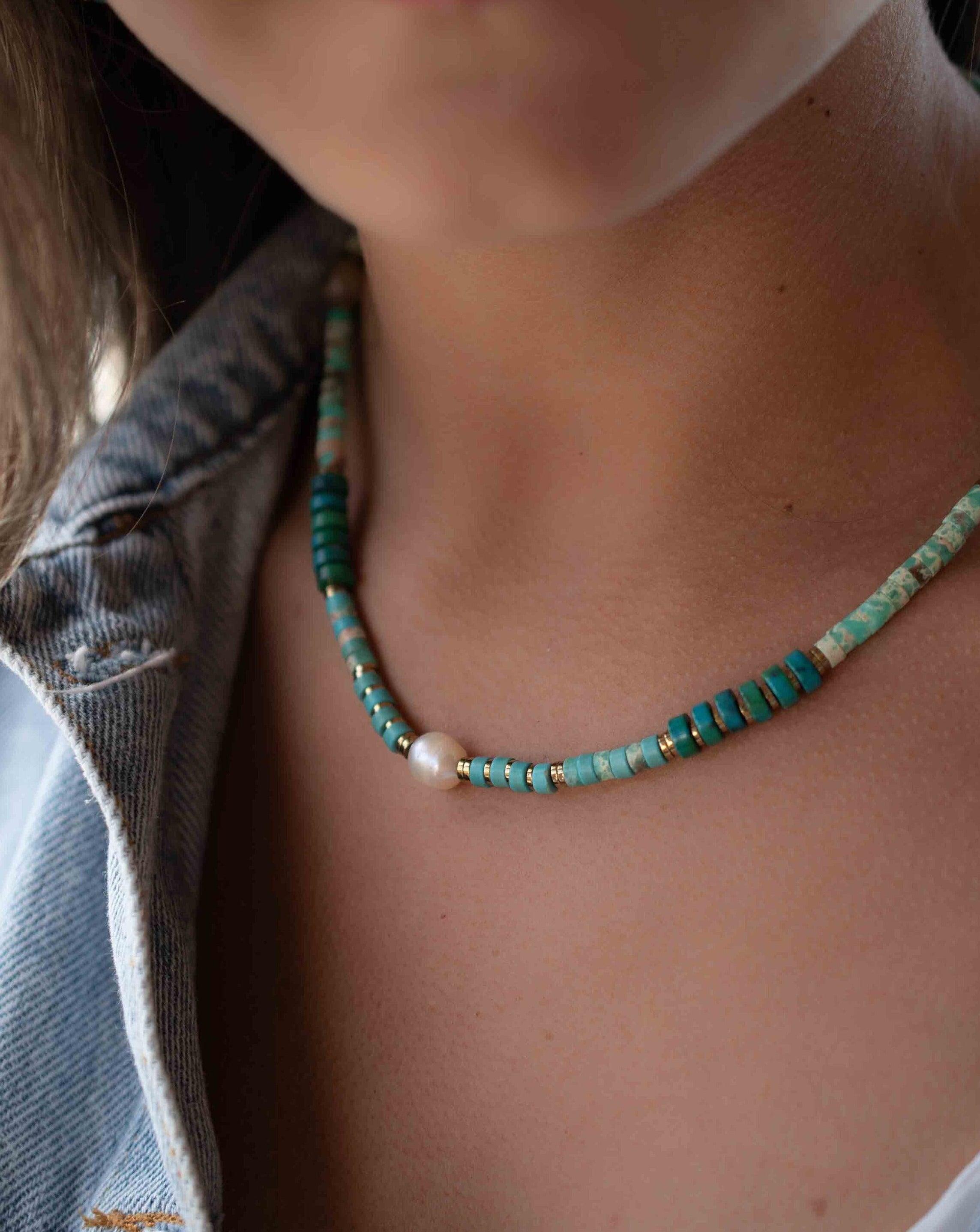 Turquoise, Jasper and Pearl necklace~ Sterling Silver 925 or Gold Filled ~ Choker ~ Jewelry ~ Gift For Her ~ Minimalist~ Handmade - MN095